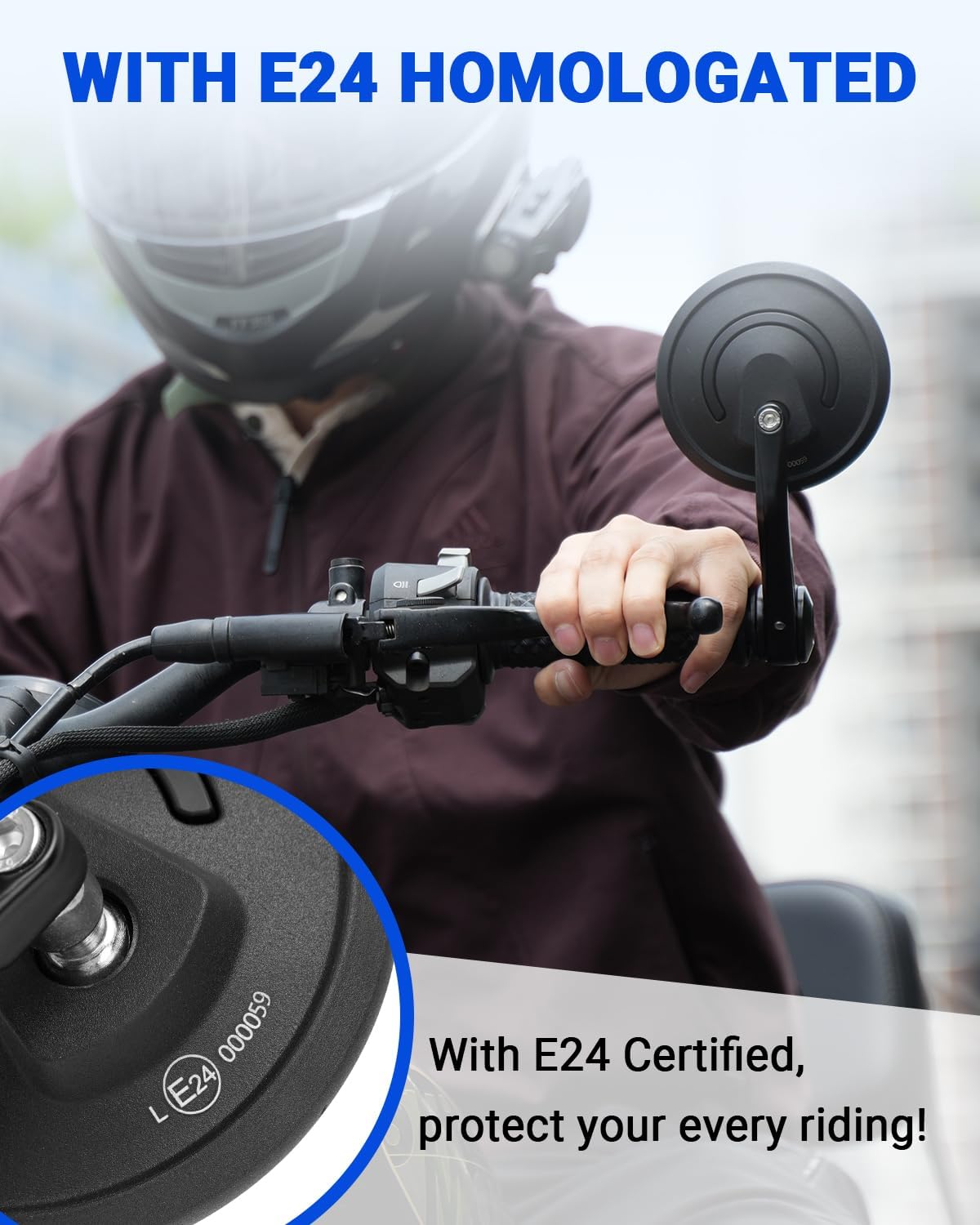 - 【Einfach zu installieren】 Wenn Ihr Lenker an den Enden Gewinde hat, müssen Sie nur die Schrauben in die Löcher festziehen. Bei einigen Modellen sind möglicherweise geringfügige Änderungen erforderlich, um dieses Motorrad Spiegel e-geprüft zu