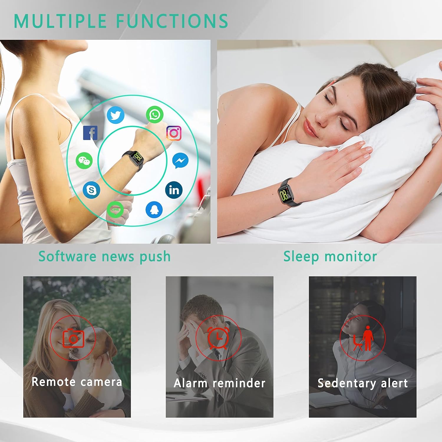 • Aktivitäts-Tracker (Schrittzähler, Entfernungsmesser, Kalorienzähler,GPS-Tracking Pedometer ), Benachrichtigung bei Alarm, Erinnerungsalarm sich zu bewegen, Kamera-Fernbedienung, Handgelenksensor, Bildschirmhelligkeit anpassen, Anrufe und SNS-Alarm.