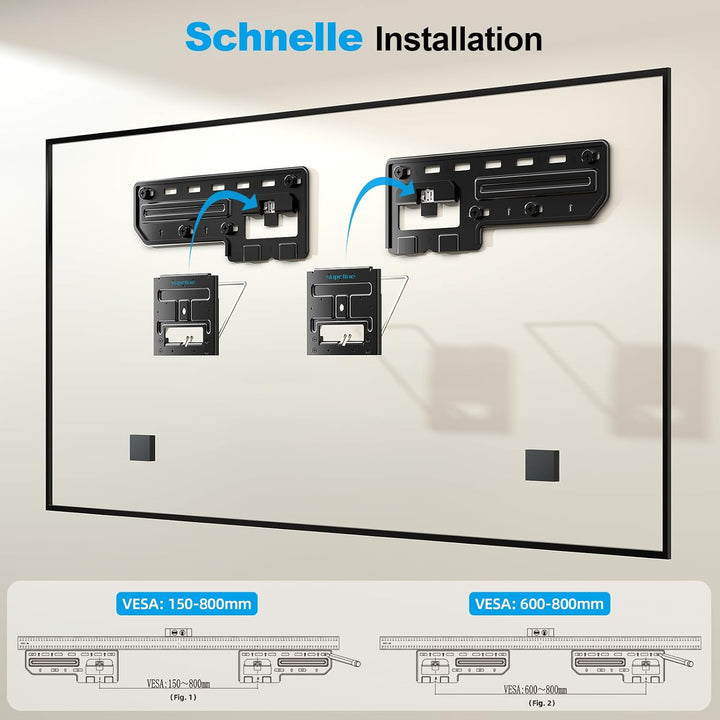 - Weitere Kompatibilität: Passt für 42 bis 100 zoll LED/LCE/OLED Flach-/Rahmen-Fernseher jeder Marke, diese flache TV-wandhalter unterstützt TV VESA von 150x150mm bis 800x400mm (und grössere VESA, solange Ihr Fernseher innerhalb des tragenden Bereichs