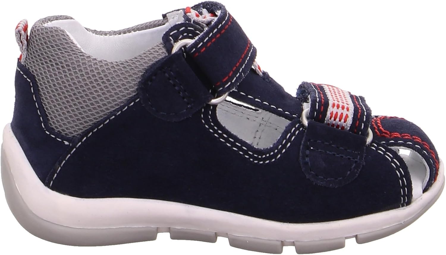 PRODUKTBESCHREIBUNGEN FREDDY von superfit ist der Klassiker unter den Sandalen für Laufanfänger. Das zehengeschlossene Modell bietet Schutz und Halt für alle kleinen Abenteurer. Zudem besteht das Obermaterial aus strapazierfähigem Veloursleder, das Innenfutter wird aus hochwertigem und weichem Leder gefertigt. So kann Druckstellen vorgebeugt werden. Die zwei Klettverschlüsse erlauben ein rasches An- und Ausziehen, zudem kann der Schaft in der Weite reguliert werden. Ein weiches Lederfussbett sorgt darüber hinaus für optimalen Tragekomfort. FREDDY wird in der WMS-Weite M IV hergestellt.