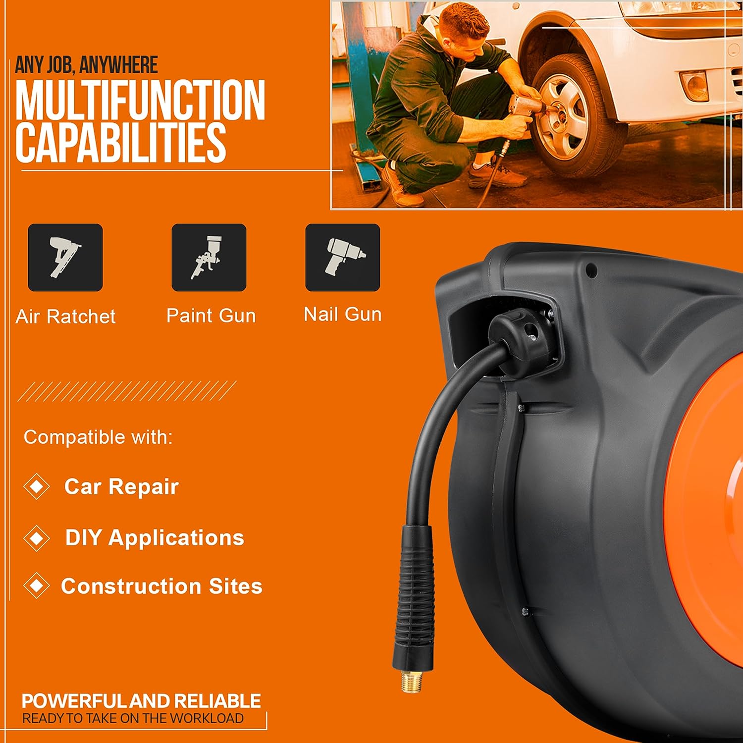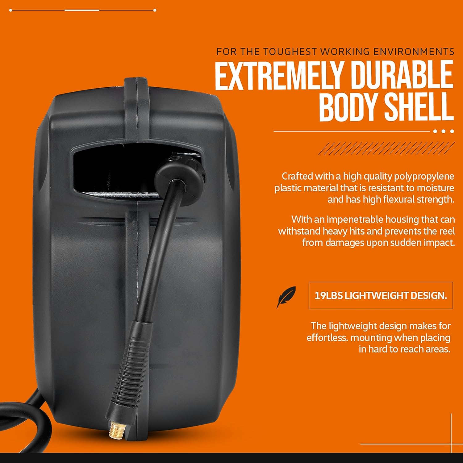 - Effizientes Design - Diese Schlauchaufroller verwenden Doppelanpassung verbessert Ratschen den Schlauch an jeder gewünschten Länge zu verriegeln. Das automatische Führungssystem, zieht den Schlauch geordneten Art und Weise w / ohne anhäufen.
