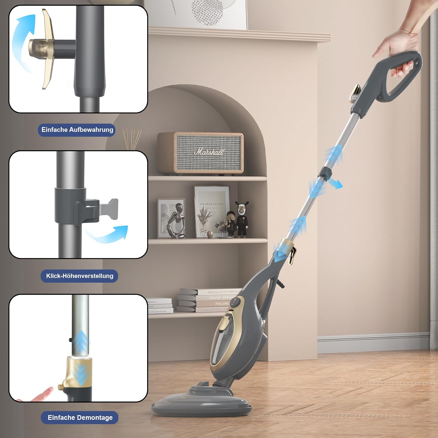 - [Ergonomisches Dampf-Reinigungsgerät] Mit einem abnehmbaren, ergonomischen Griff ist unser Dampf-Reinigungsgerät einfach zu bedienen und reduziert die Reinigungsbelastung.