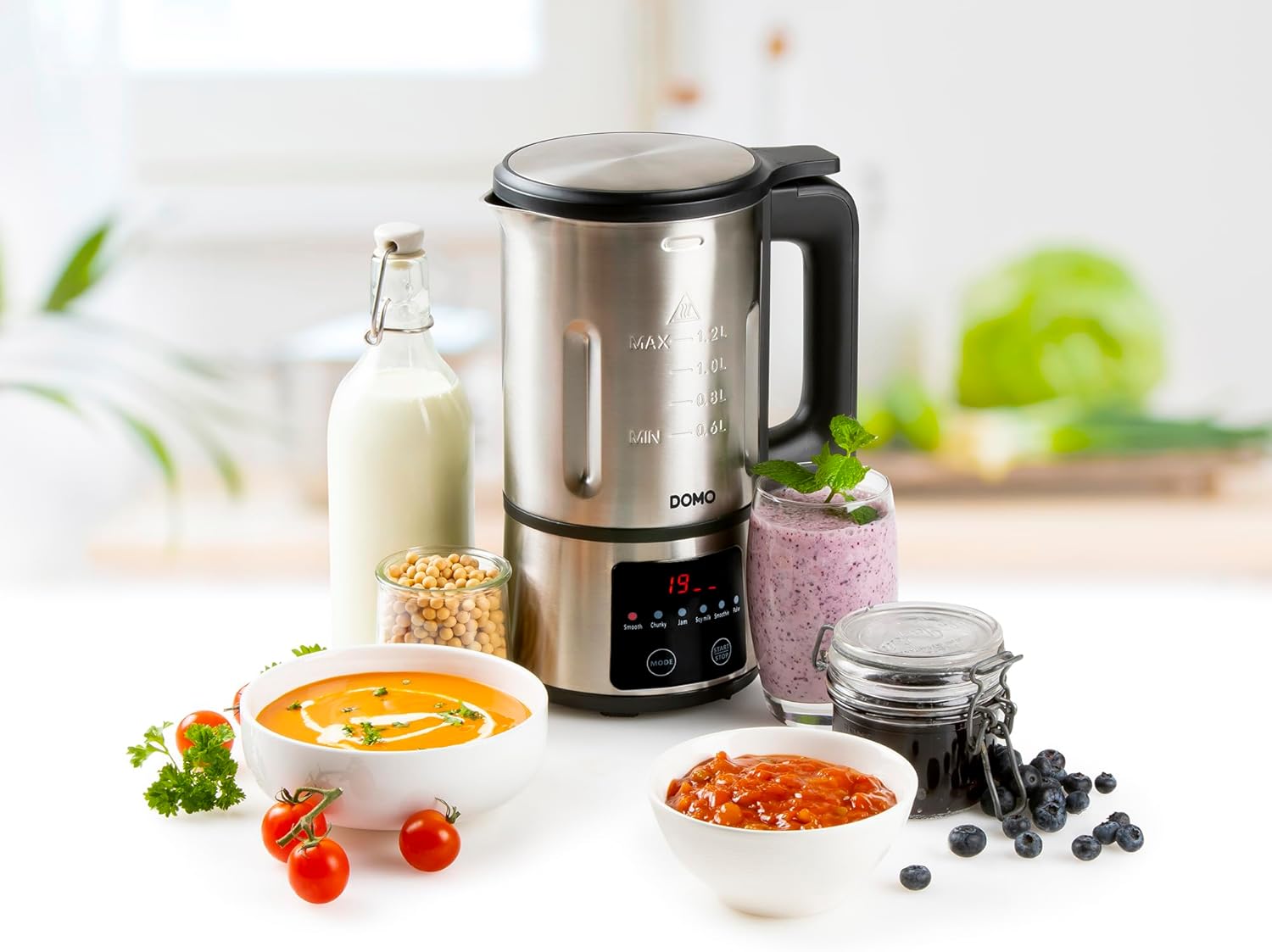 - 6 Programme: smooth, chunky, jam, soy milk, smoothie, pulse