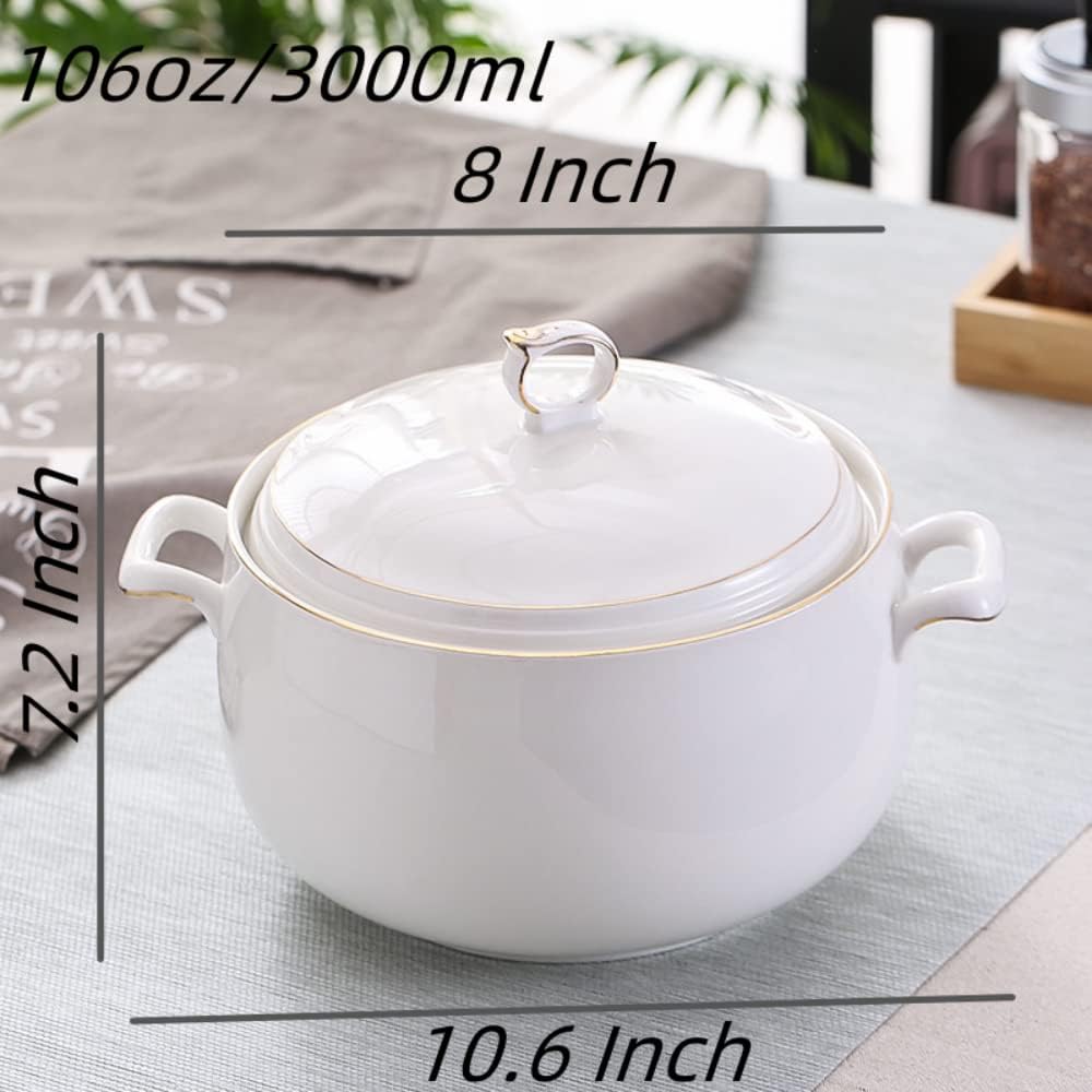 - ★ Grosses Fassungsvermögen. 26,9 x 20,3 x 18,3 cm. Die Kapazität der Keramik-Terrine beträgt 3000 ml, geeignet für den täglichen Gebrauch oder Partys. Perfekt für Gemüsesuppe, Chili, französische Zwiebelsuppe, Nudeln, Salat, Obst und so weiter.