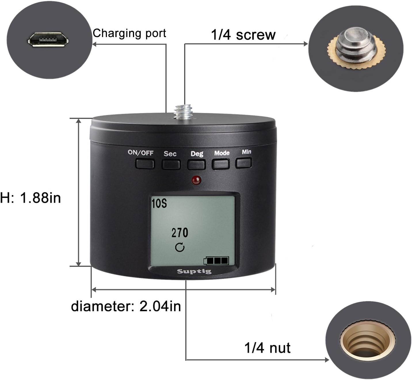 • Kleines Volumen und toller Gebrauch: Grösse: Höhe 4,8 cm, Durchmesser 5,2 cm. Kompatibel mit den Suptig Elektro-Stativadaptern kann an einen 1/4-Zoll-Schraub-Selfie-Stick / Mini-Stativ / Profi-Stativ für Ihre Bequemlichkeit angeschlossen werden und