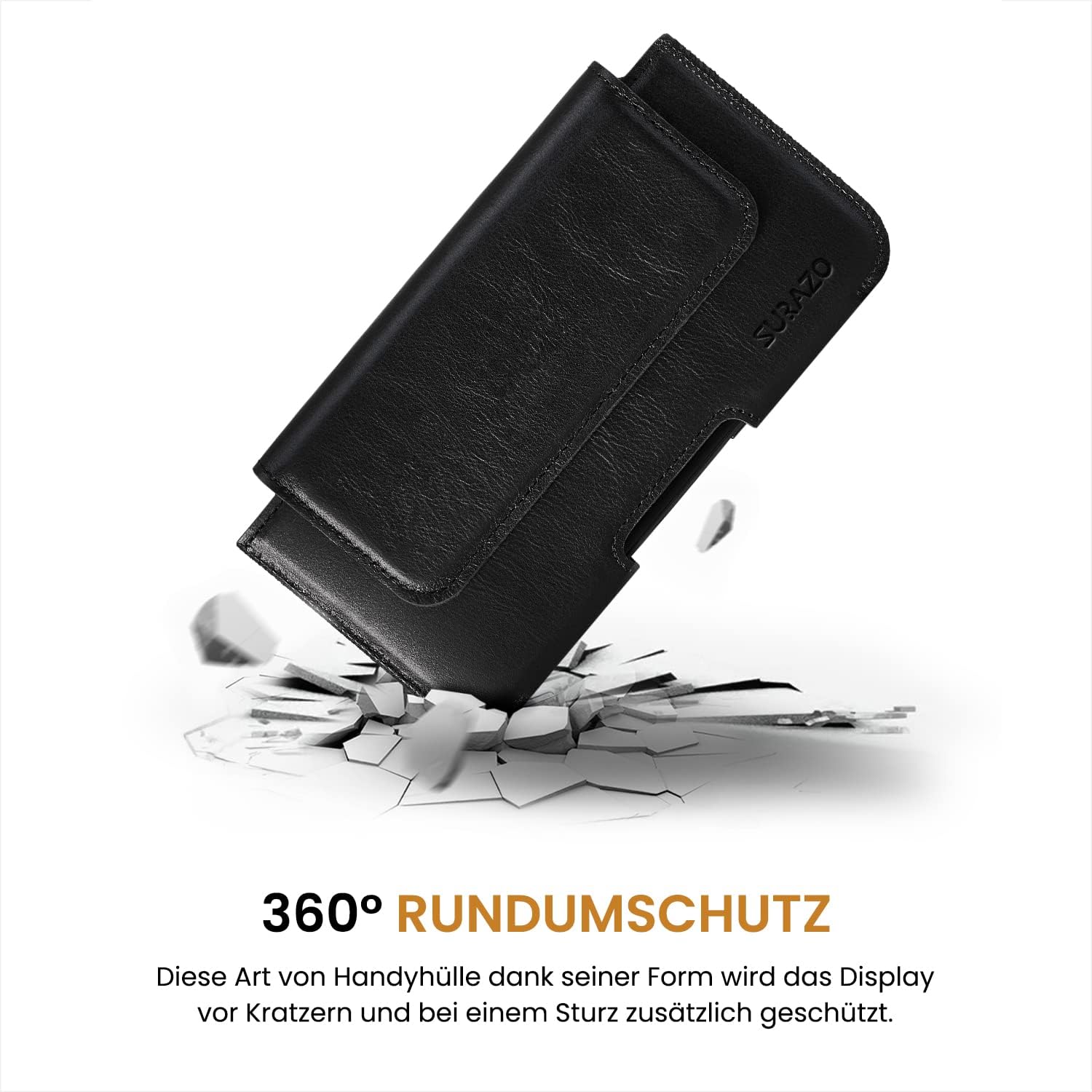 - ✅𝗛𝗢𝗛𝗘 𝗤𝗨𝗔𝗟𝗜𝗧𝗔̈𝗧 : Original SURAZO Handyhülle hergestellt aus selektierten, hohen Qualität 100% echtem Narbenleder. Wunderschönes Rindsleder von den besten europäischen Gerbereien. Es hat eine glatte Oberfläche
