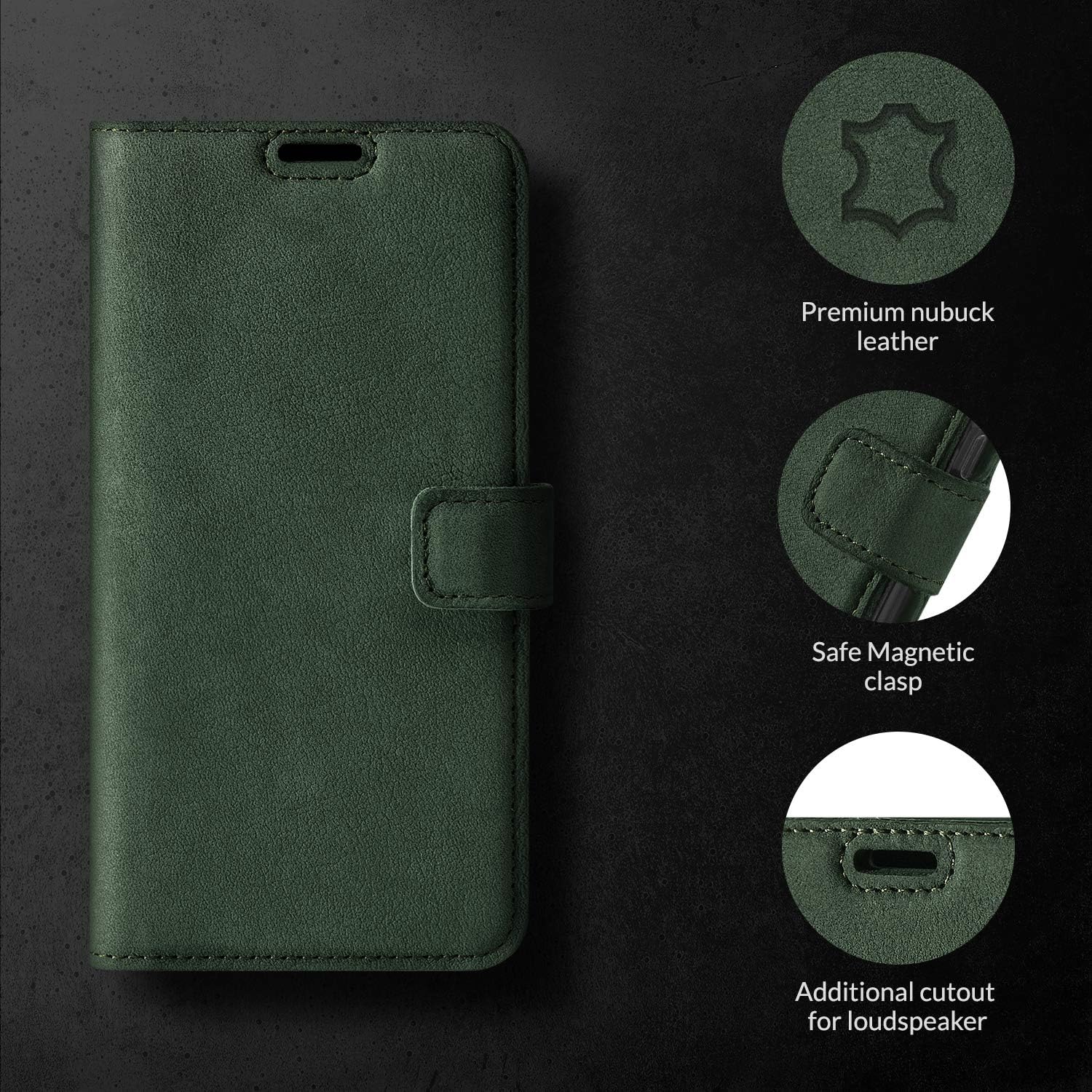 - 𝗛𝗢𝗛𝗘 𝗤𝗨𝗔𝗟𝗜𝗧𝗔̈𝗧 : Original SURAZO Handyhülle hergestellt aus selektierten, hohen Qualität 100% echtem Nubukleder - Premium Rindsleder von den besten europäischen Gerbereien. Schoenes mattes Wildleder mit
