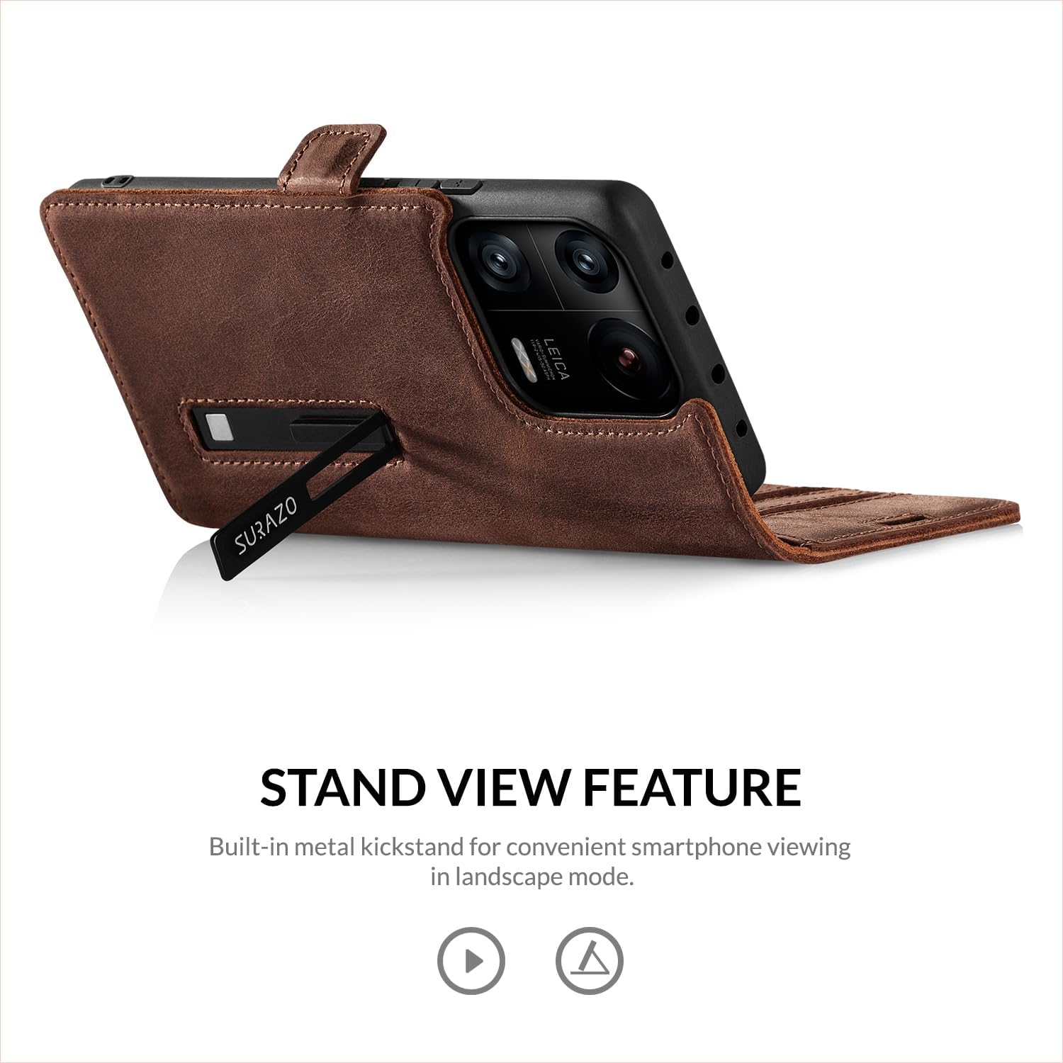 - ✅𝗛𝗢𝗛𝗘 𝗤𝗨𝗔𝗟𝗜𝗧𝗔̈𝗧 : Original SURAZO Handyhülle hergestellt aus selektierten, hohen Qualität 100% echtem Leder vom Typ „Crazy Horse“ - Kräftig, wild und mit einem rustikalen Look. Es ist ein Rindsleder von den