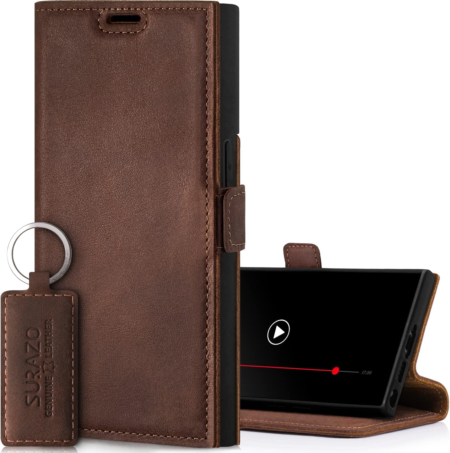 - ✅𝗛𝗢𝗛𝗘 𝗤𝗨𝗔𝗟𝗜𝗧𝗔̈𝗧 : Original SURAZO Handyhülle hergestellt aus selektierten, hohen Qualität 100% echtem Leder vom Typ „Crazy Horse“ - Kräftig, wild und mit einem rustikalen Look. Es ist ein Rindsleder von den