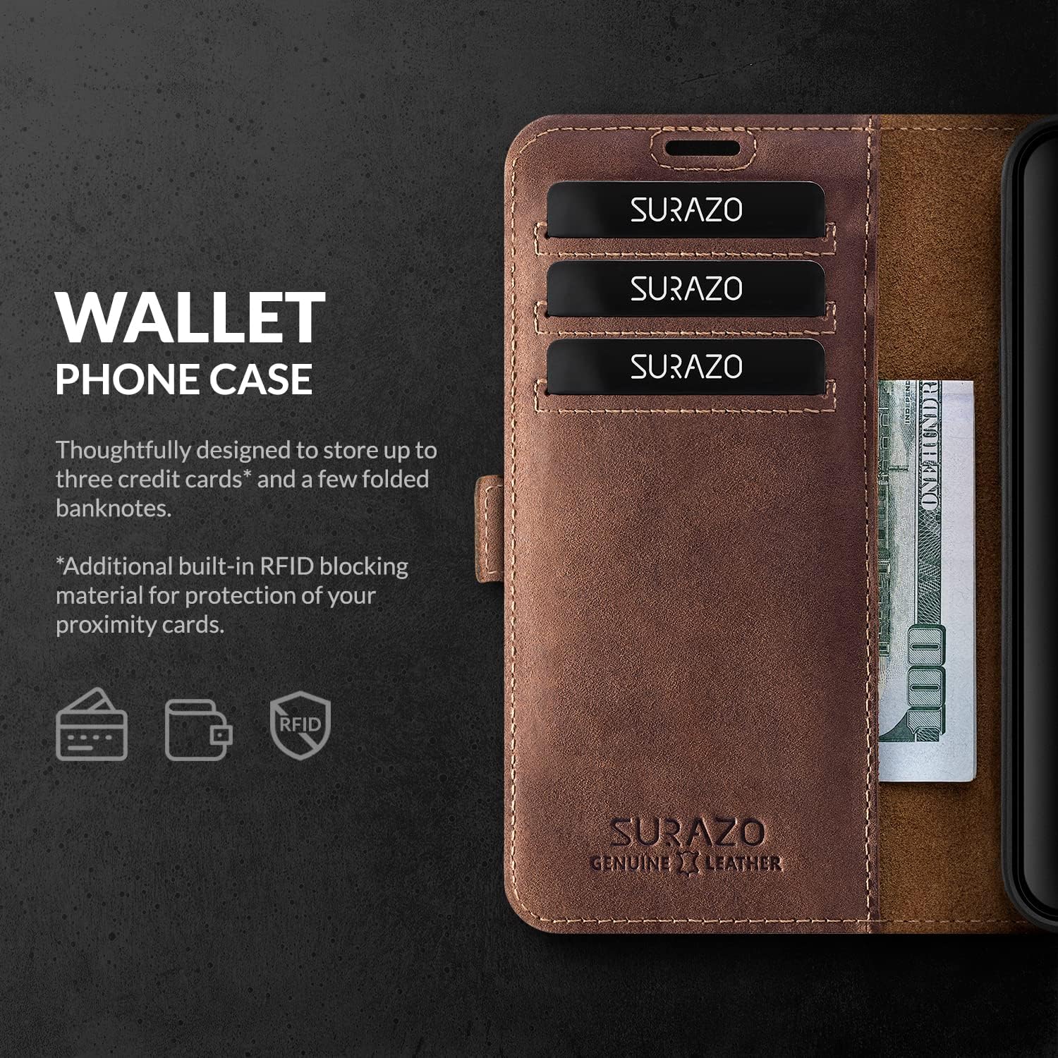 - ✅𝗛𝗢𝗛𝗘 𝗤𝗨𝗔𝗟𝗜𝗧𝗔̈𝗧 : Original SURAZO Handyhülle hergestellt aus selektierten, hohen Qualität 100% echtem Leder vom Typ „Crazy Horse“ - Kräftig, wild und mit einem rustikalen Look. Es ist ein Rindsleder von den