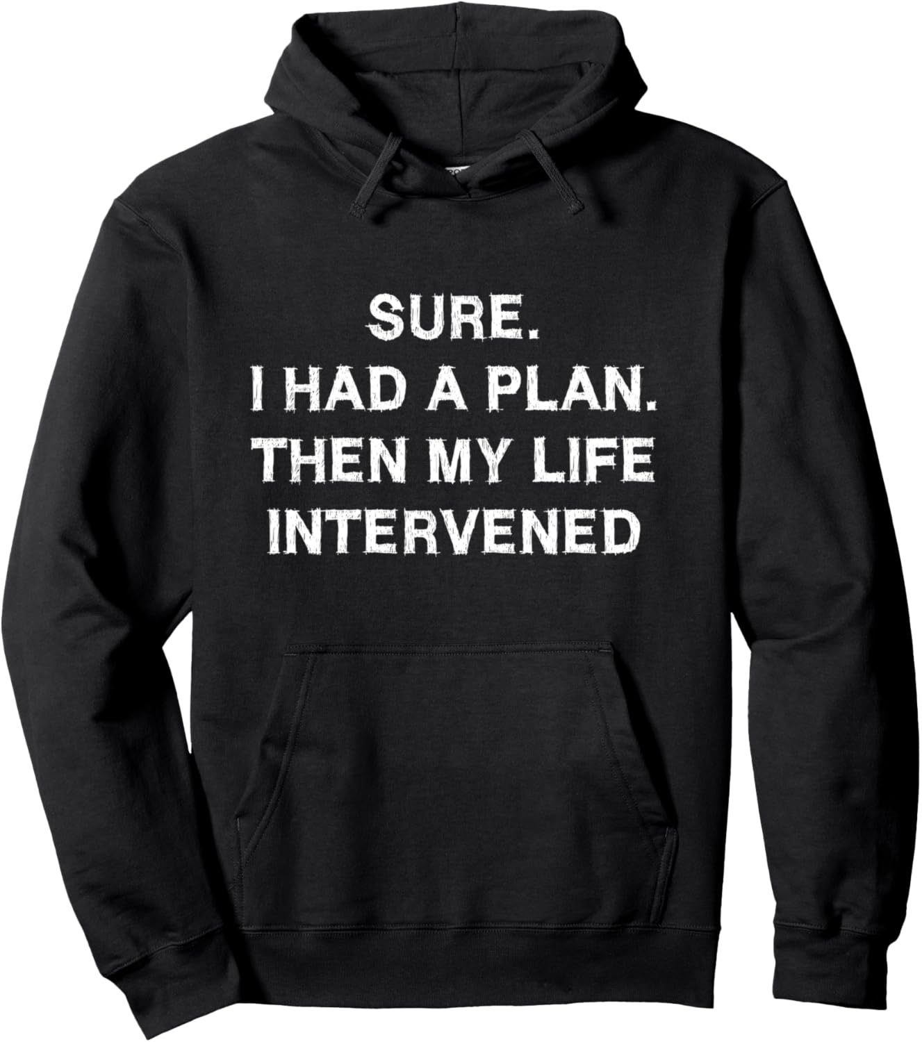 PRODUKTBESCHREIBUNGEN Humorous graphic design for fans of cool comical statements and funny phrases. Perfect gift idea to humor loving men and women for and birthdays, as funny Christmas present or everyday fun. Casual design with funny sarcastic saying: Sure. I had a plan. Then my life intervened. Cool funnny gift for teenage boys and girls who love sarkastic jokes and want to make funny statement.