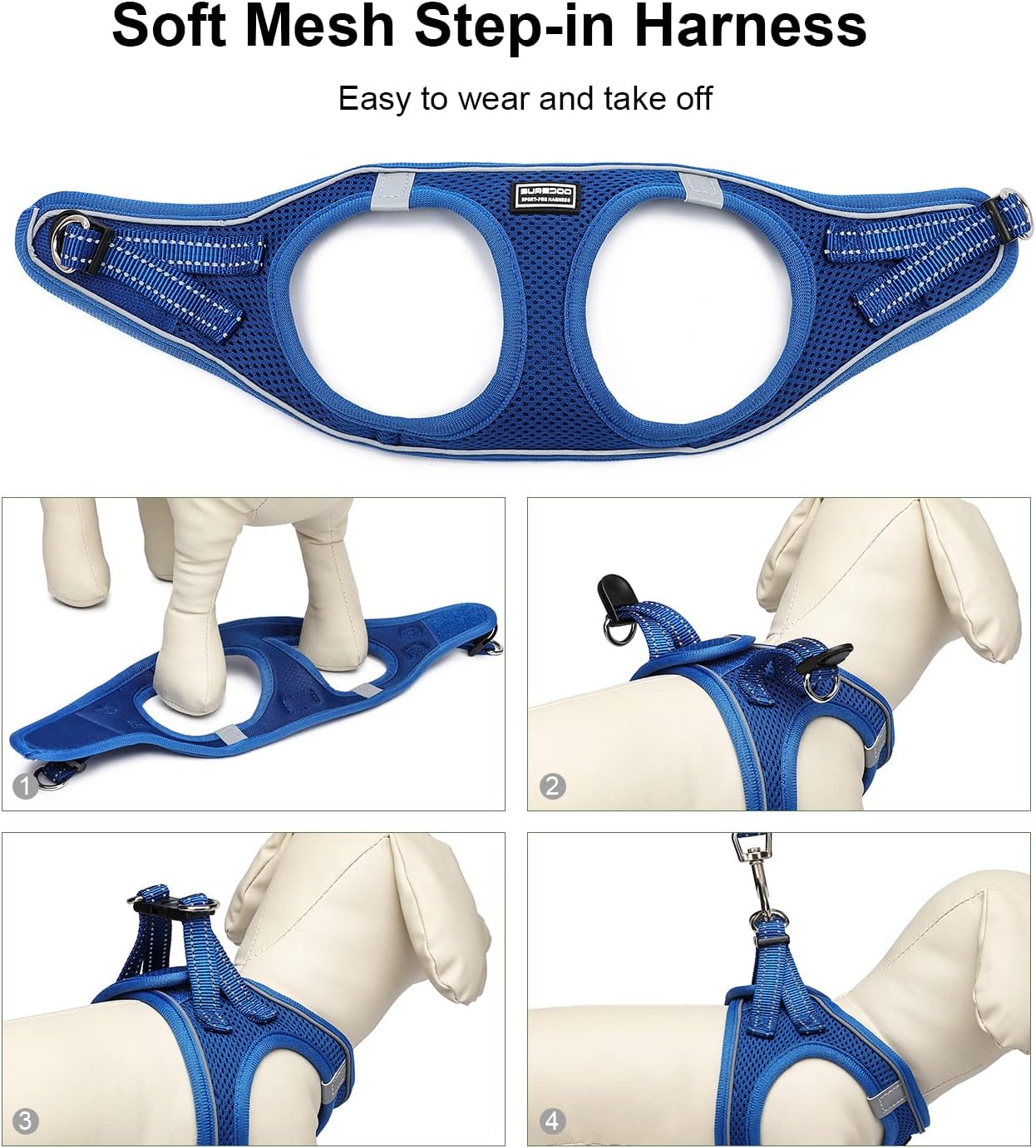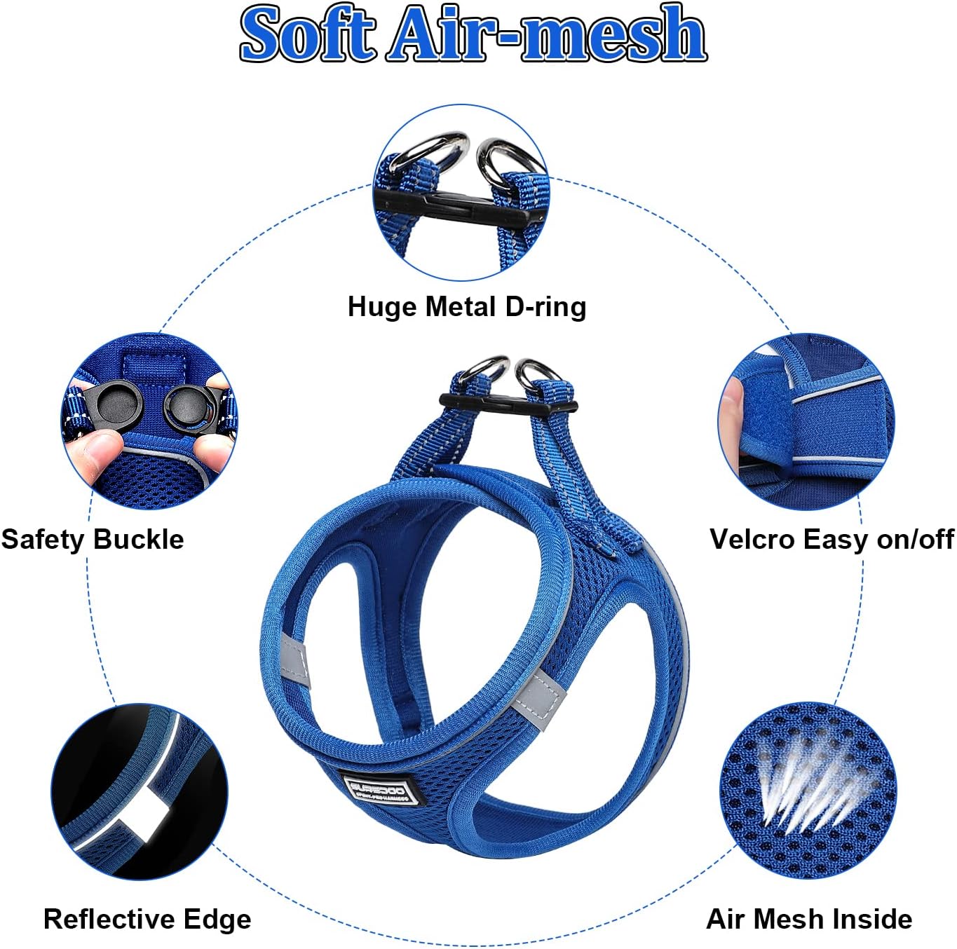 - SANFT UND BEQUEM: Das Hundegeschirr besteht aus Mesh-Material, das vordere Material ist atmungsaktiv und bequem und der Hund ist nicht stickig. Der umgekehrte Stoff ist zart und weich, und die Webfäden sind dicht und kleben nicht an Hundehaaren.