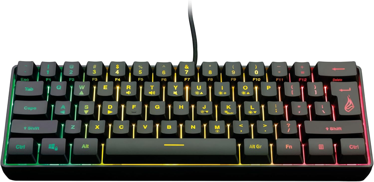 - KLEIN ABER OHO - Mehr Platz auf dem Tisch: Das Gaming-Keyboard bietet alle Funktionen einer herkömmlichen Gaming-Tastatur auf einer Grösse von 60% - perfekt zum Mitnehmen zu LAN-Parties.