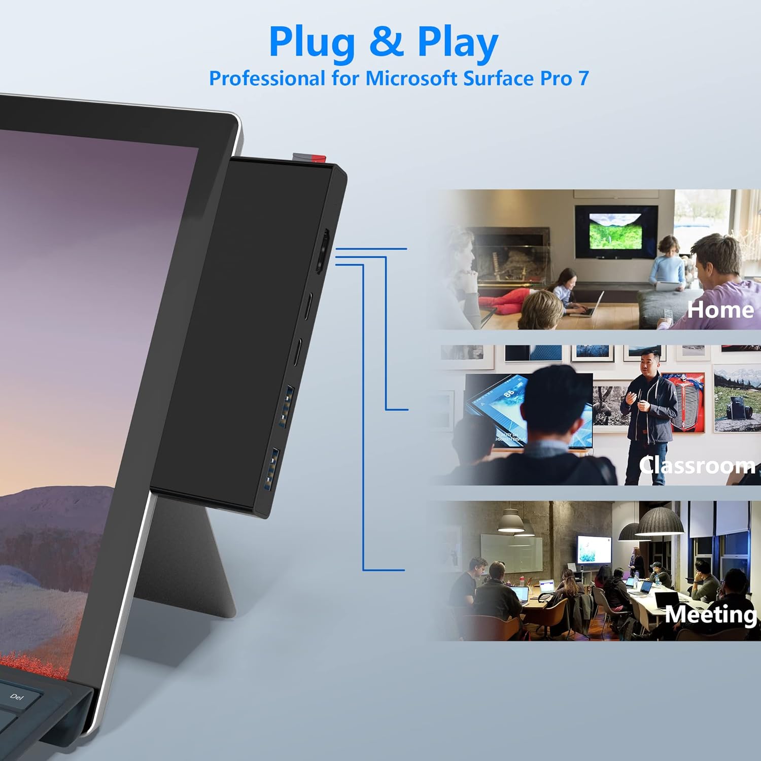 - 【Fahrerfreies und Pro 7-Style-Design】 Das spezielle abgeschrägte und kompakte Design dieser Surface Pro 7-Dockingstation passt perfekt zu Ihrem Surface Pro 7. Nur Plug-and-Play, kein Fahrer erforderlich. Das geringe Gewicht ist praktisch für Reisen