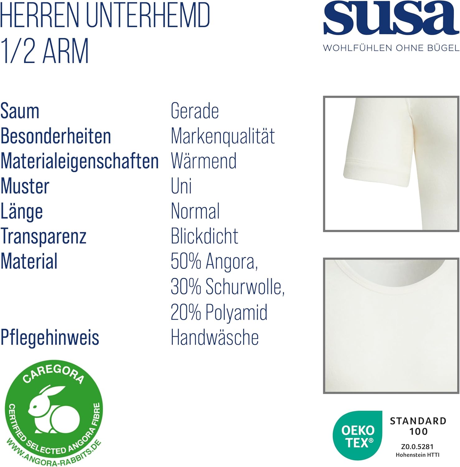PRODUKTBESCHREIBUNGEN SUSA Thermounterwäsche Herren Angora Weiss I Kälteschutz mit angenehmem Tragekomfort I 100% Made in Germany I Skiunterwäsche Herren Oberteil kurzarm Mehr
