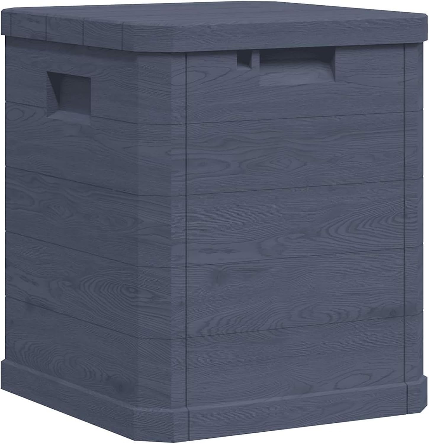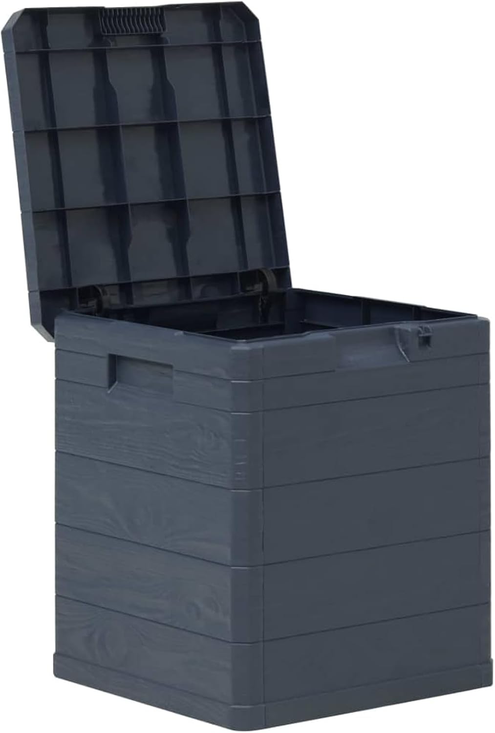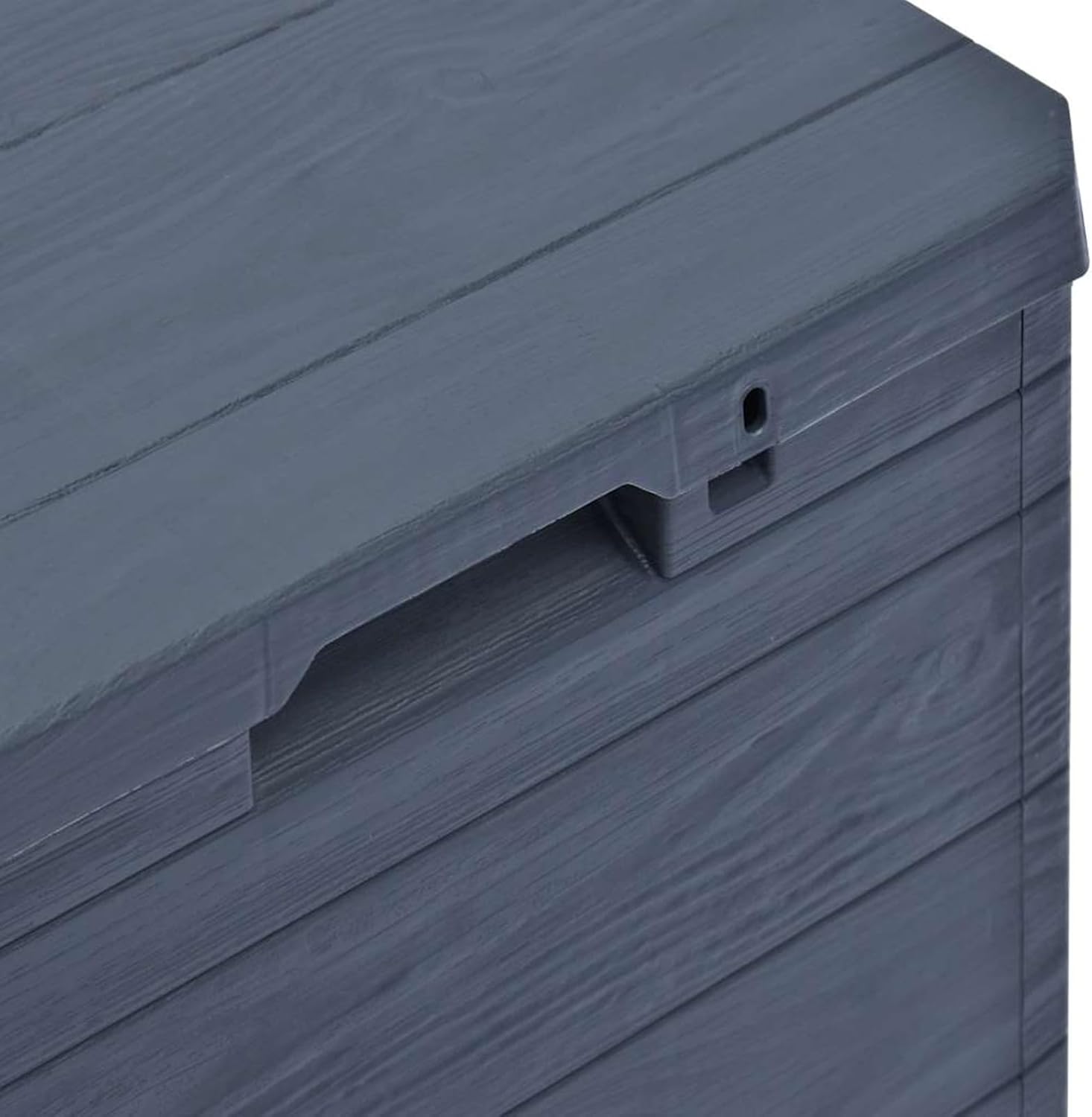 - Produkte eigenschaften: Farbe: Anthrazit Material: Kunststoff (mit Holzoptik) Masse: 42,5 x 44 x 50 cm (L x B x H) Fassungsvermögen: 90 L Abschliessbar (Schloss ist nicht inbegriffen) Geeignet für den Innen- und Aussenbereich