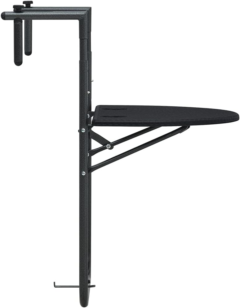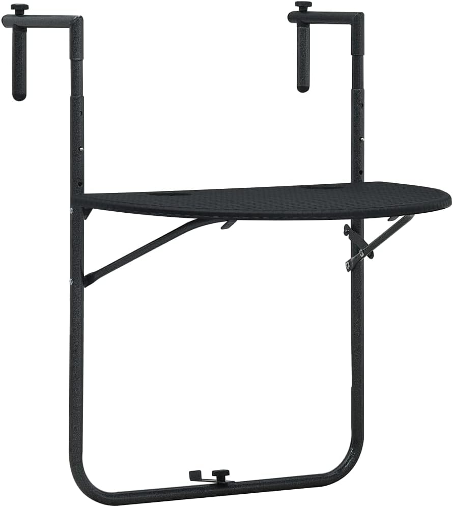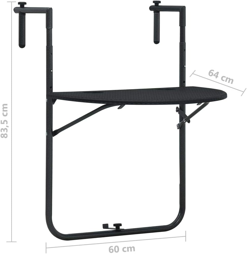 • Balkontisch Höhenverstellbar Hängend Klappbar Balkonhängetisch Balkon Klapptisch Hängetisch Schwarz 60x64x83,5cm Kunststoff Rattan-Optik