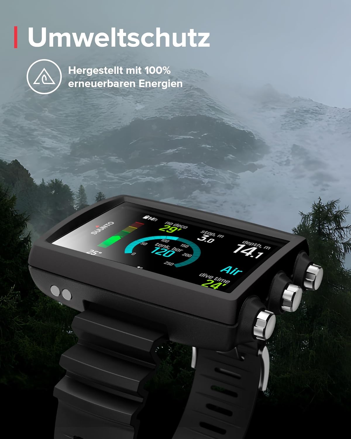 - Suunto Fused RGBM: Komplexer Algorithmus für Kreislauf-, Sport- und technisches Tauchen, Ermöglicht sicheren Aufstieg dank verlängerter Grundzeit und verkürzter Gesamtdekompressionszeit durch kontinuierlichen Aufstieg, Bis 80m Tiefe geeignet