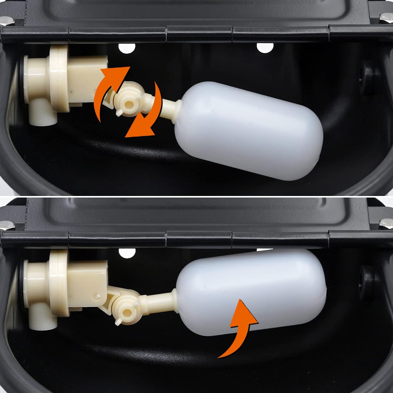 - 🐎EINFACHE INSTALLATION:Auf der Rückseite des Viehtrogs befinden sich 2 Schraubenbefestigungslöcher für eine einfache Installation; Sie können den Wasserstand durch Drehen der Metallflügelmutter oder des Schwimmers einstellen und entsprechend den