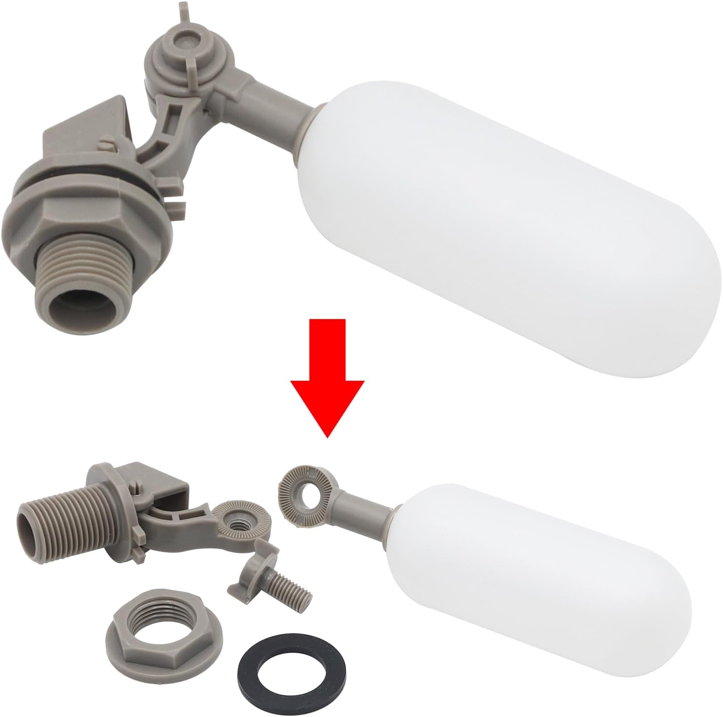 - EINFACH ZU BEDIENEN: Schwimmendes Ventil mit 1/2 NPT-Rohrgewinde; Gewindegrösse ca. 3/4 Zoll mit Standard-Gummidichtungen zur Vermeidung von Leckagen und zur Abdichtung; PVC-Schrauben am verstellbaren Arm zur Vermeidung von Rost und Oxidation