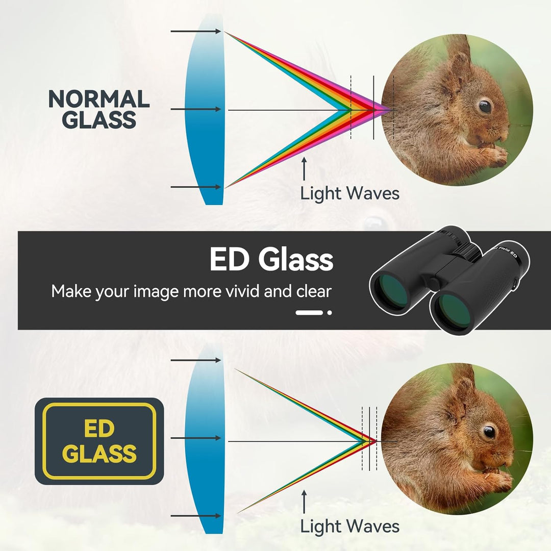 - ED-Glas; das Fernglas eliminiert weitgehend chromatische Aberration; stellt die reale Landschaft in hohem Masse wieder her; und macht das Bild scharf und klar