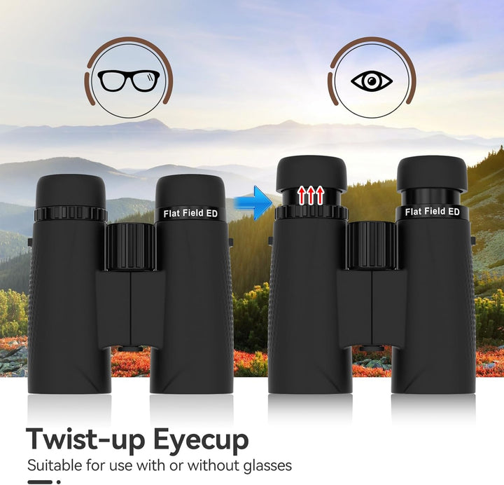 - IP67 wasserdicht; das Fernglas kann auch bei schlechtem Wetter verwendet werden; Erhöhung der Haltbarkeit des Fernglases und Verlängerung seiner Lebensdauer