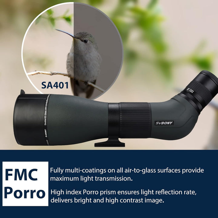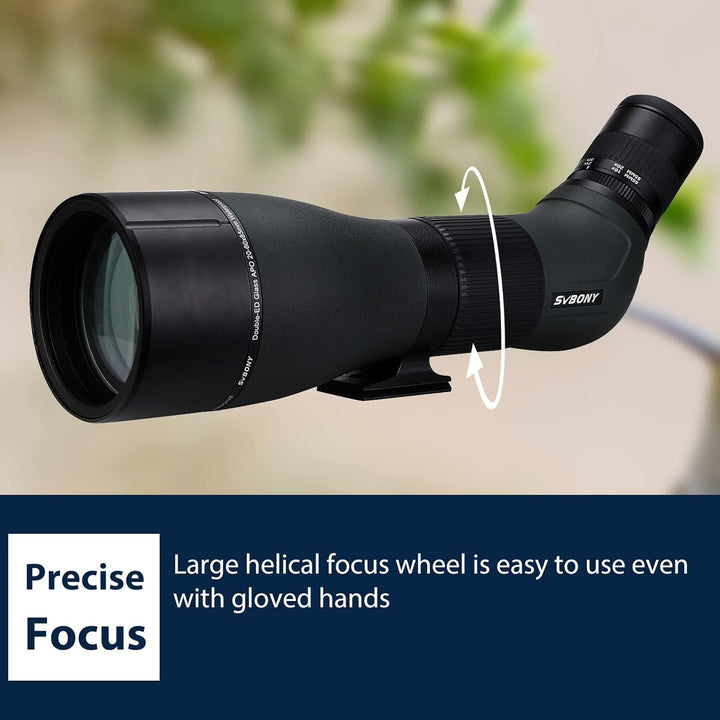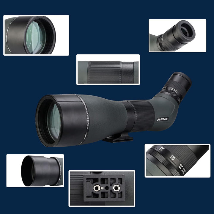 - Leistungsstarkes Okular; Zoom 20x - 60x Okular aus 8 Linsenelementen die auf weit entfernte Motive mit unglaublicher Klarheit und hervorragender Rand-zu-Rand-Schärfe fokussieren