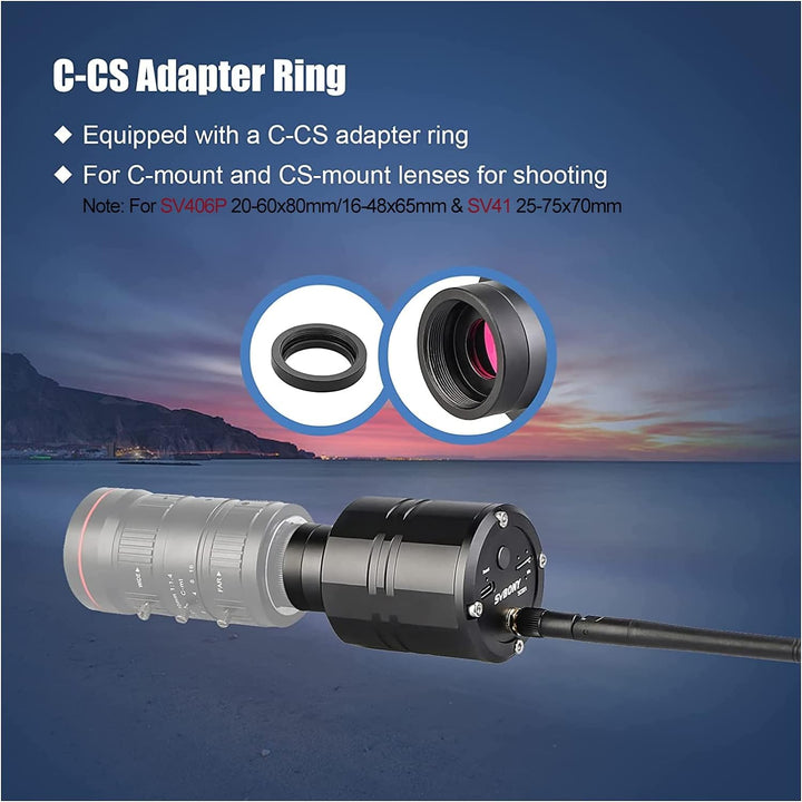 - 1,25 Zoll Standardschnittstelle; Die Verwendung mit einem 1,25 Zoll Schnittstellen Spektiv stellt sicher; dass die optische Achse koaxial ist. ausgestattet mit einem C-CS-Adapterring; der mit C-Mount-Objektiv und CS Mount Objektiv für Aufnahmen