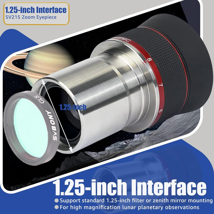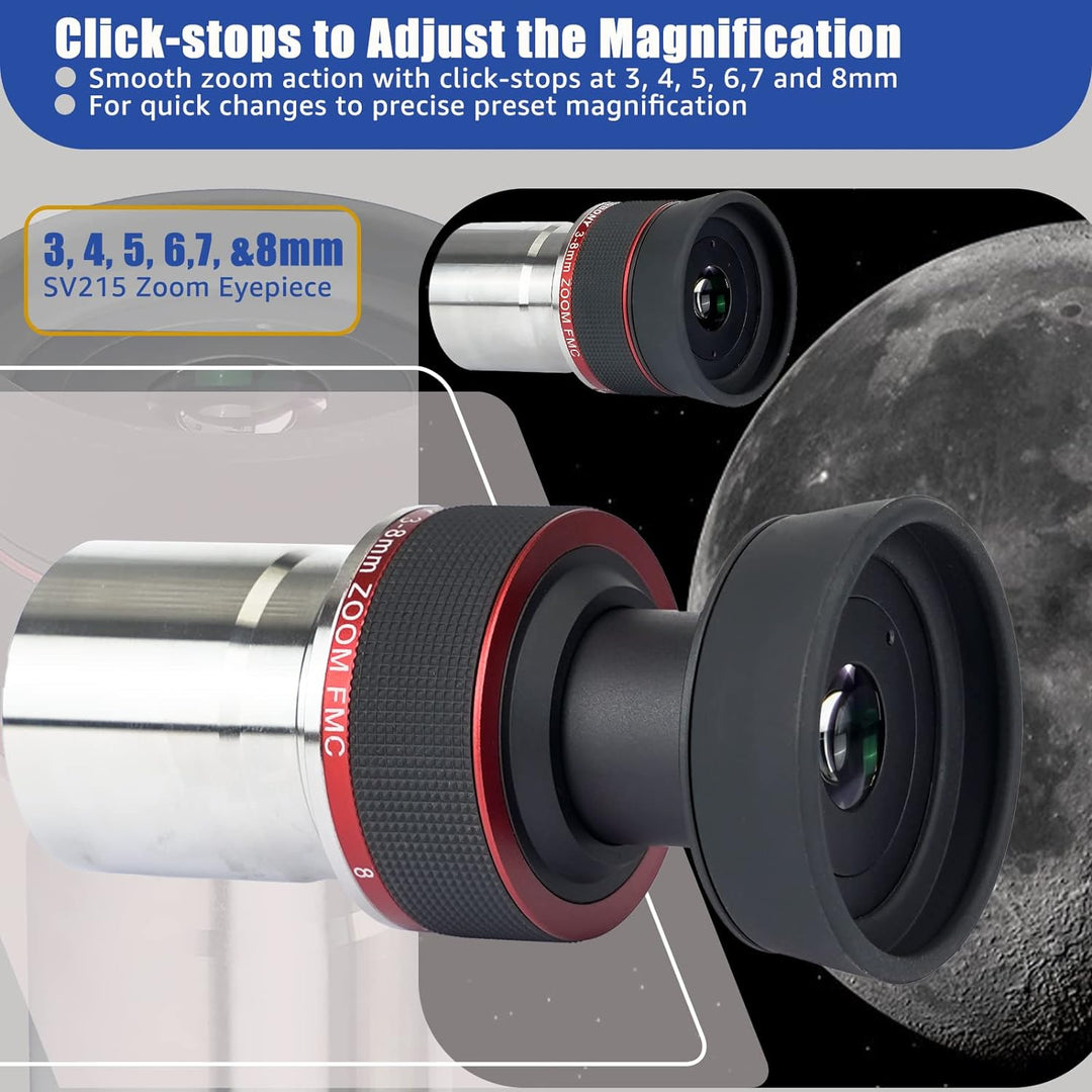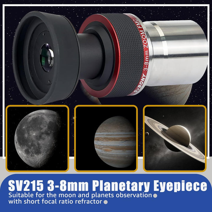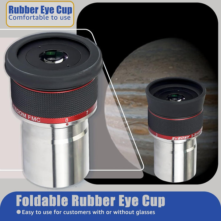 - 1,25 Zoll 3-8mm Zoom-Planetenteleskopobjektiv; geeignet für Refraktorteleskope mit kurzer Brennweite; verbessert effektiv den Kontrast von Planetenzielen