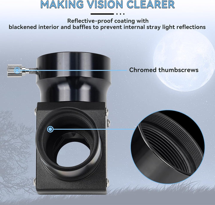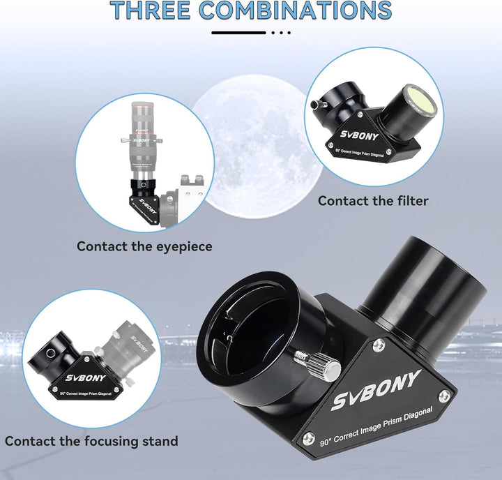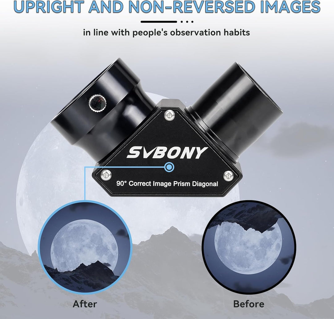 • 90 Grad Design; sorgt für ein besseres Beobachtungserlebnis bei visueller Beobachtung; 99% hohes Reflexionsvermögen; grosse Lichtdurchlässigkeit; gute bildwirkung