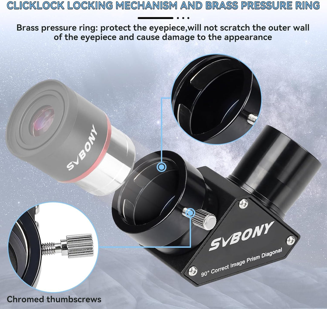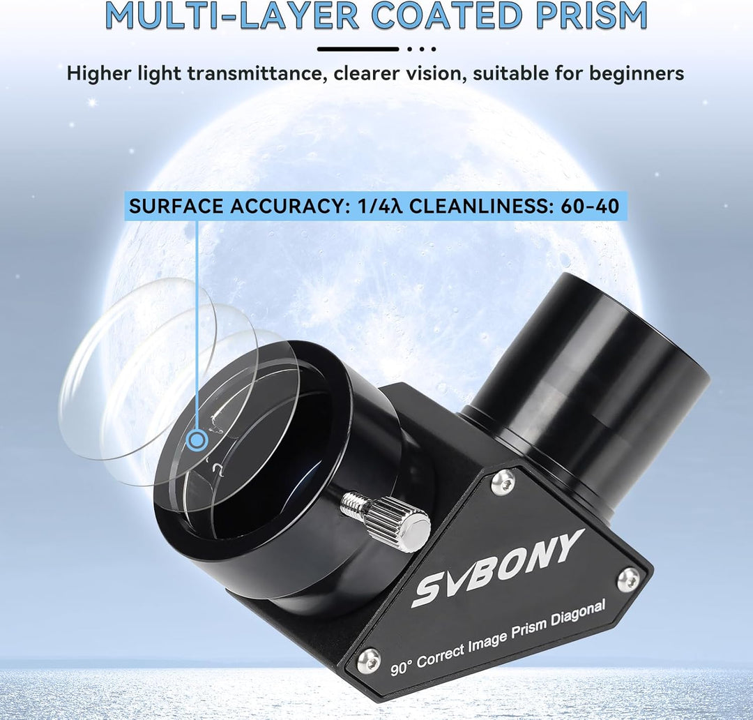 Svbony SV222 Zenitspiegel, 1,25" Zenitspiegeladapter, 90° Zenitspiegel aus Metall mit Okularverriege