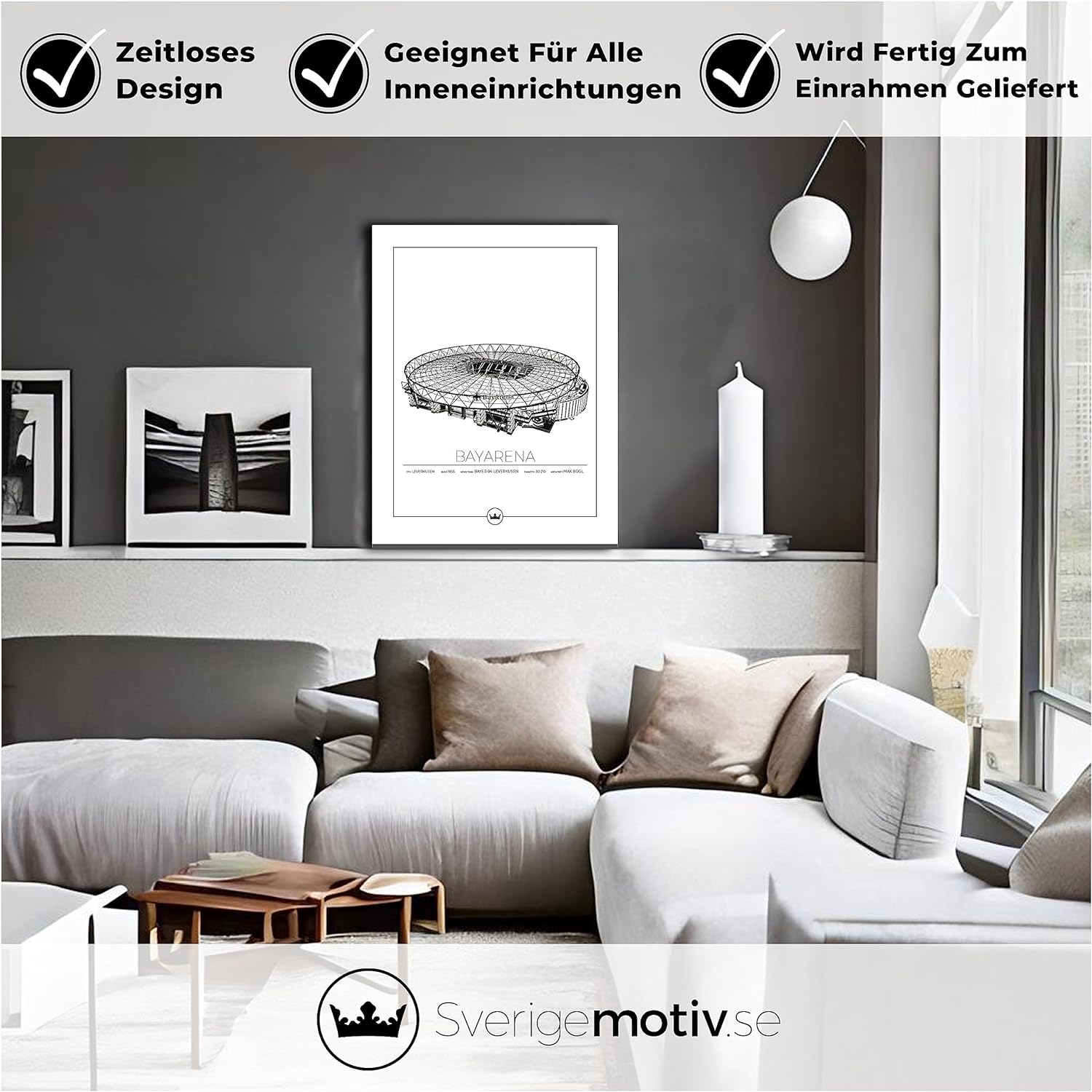- UMWELTFREUNDLICHE GESCHENKE Sverigemotiv.se ist darauf spezialisiert, Bilder der legendären Wandkunstarchitektur von Fussballstadien einzufangen und sie als klassische ökologische Wanddekoration für Zuhause zu präsentieren, die eine bedeutungsvolle