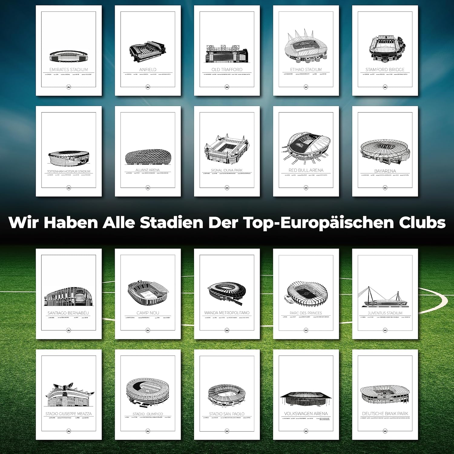 - LEGENDÄRE STADION-WANDPOSTER Unsere zeitlosen Poster mit unglaublichen Bauwerken und Fussballarenen passen zu den meisten Innenräumen und erinnern an Ihre Lieblingsarenen, sodass gute Erinnerungen wach bleiben. Ein einzigartiges Geschenk für jeden Fan.