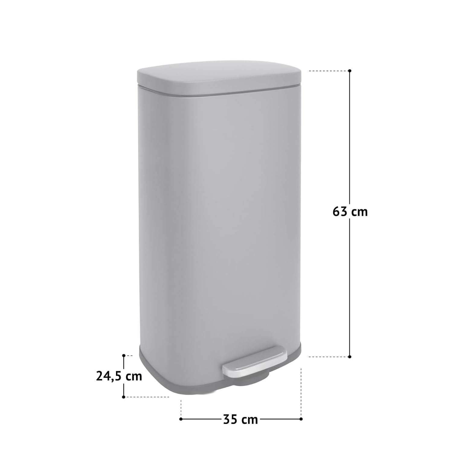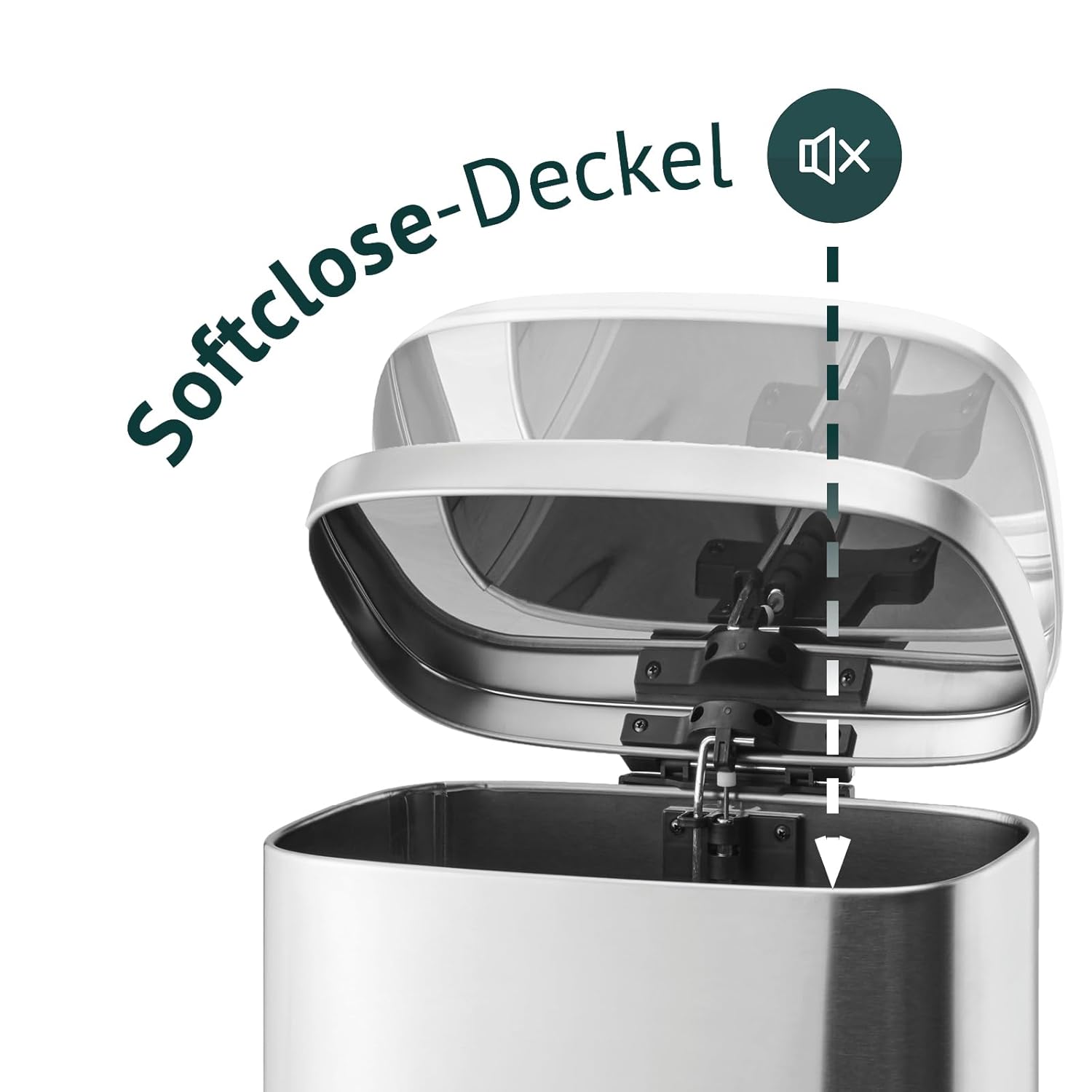 - Geräumiger Abfalleimer SVITA Mülleimer TQ30 aus Edelstahl – 30L Fassungsvermögen - Tretmechanismus – robustes Pedal – Deckel mit Soft-Close-System: schliesst sanft und geräuschlos