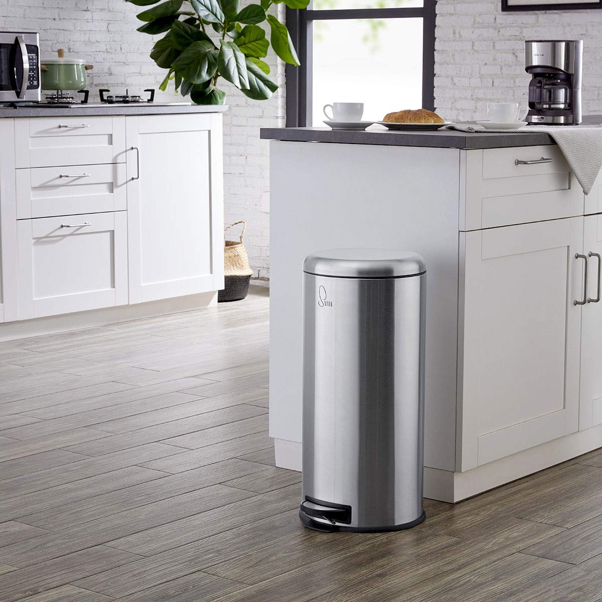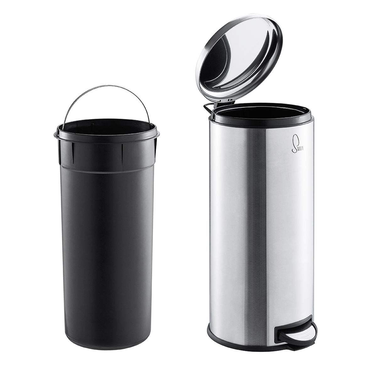 SVITA T30 Mülleimer Treteimer Abfalleimer 30 Liter inkl. Inneneimer rund Küchen-Hilfe Edelstahl Silb