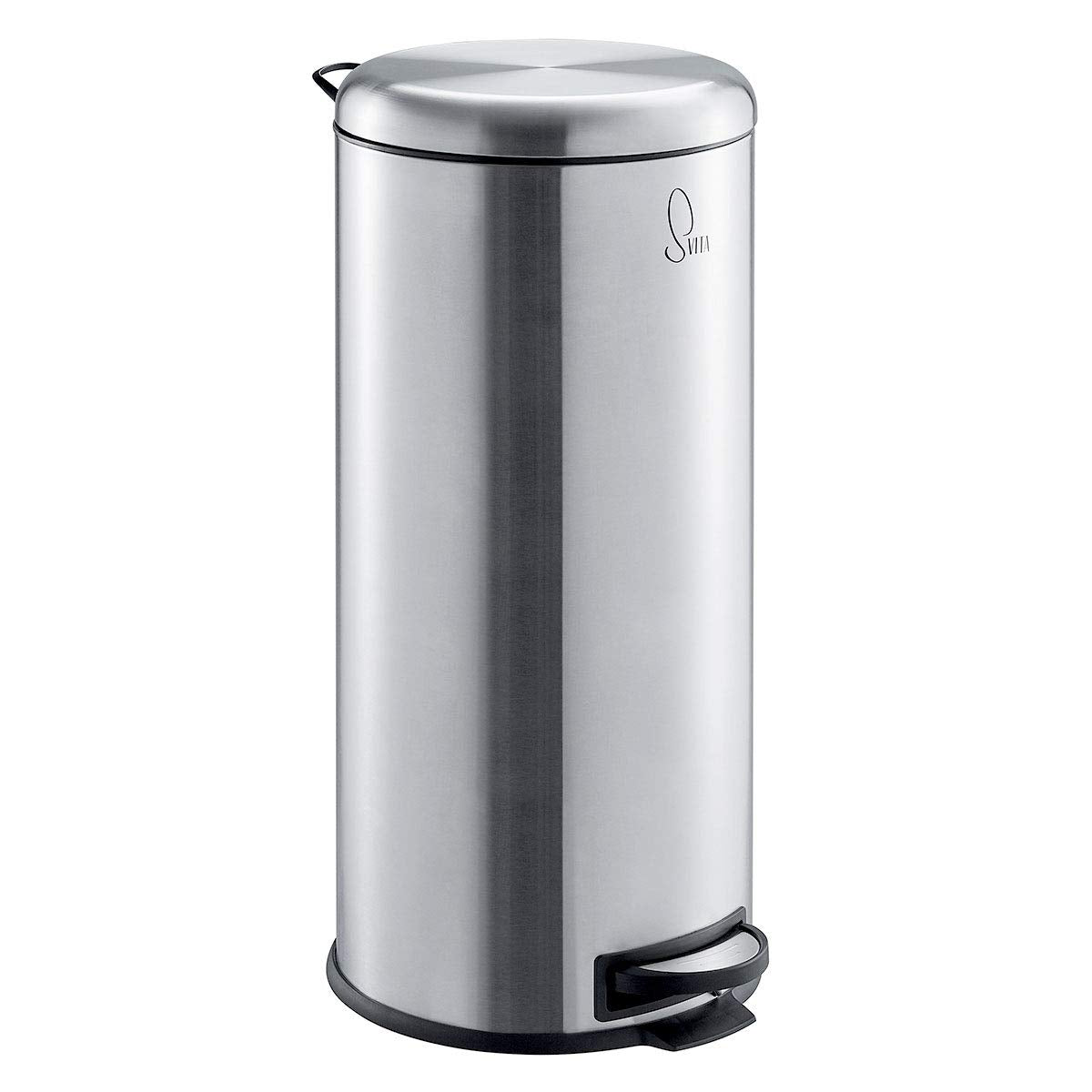 • SVITA T30 runder Abfalleimer aus Edelstahl mit Tretmechanismus und 30 Liter Fassungsvermögen