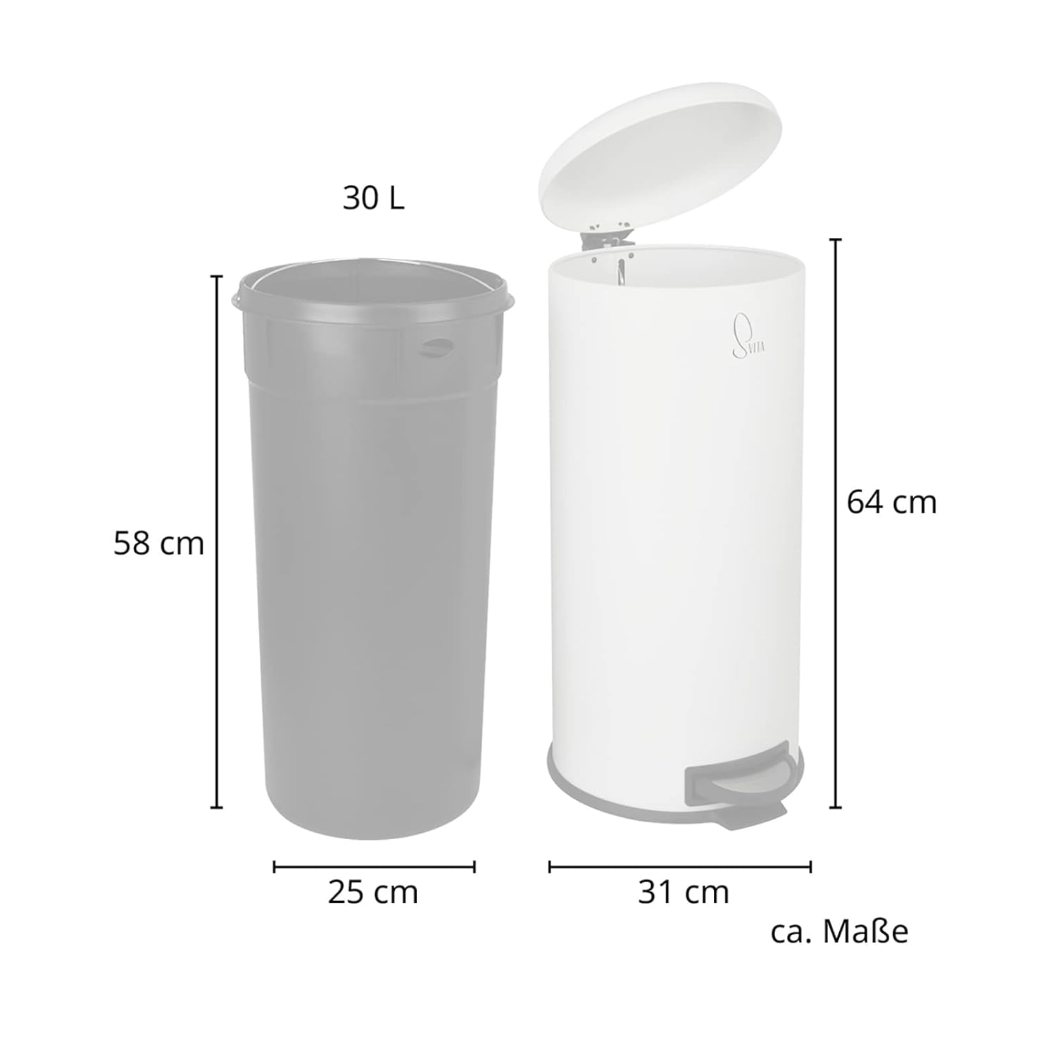 - SVITA T30 runder Abfalleimer aus pulverbeschichtetem Stahl mit Tretmechanismus und 30 Liter Fassungsvermögen