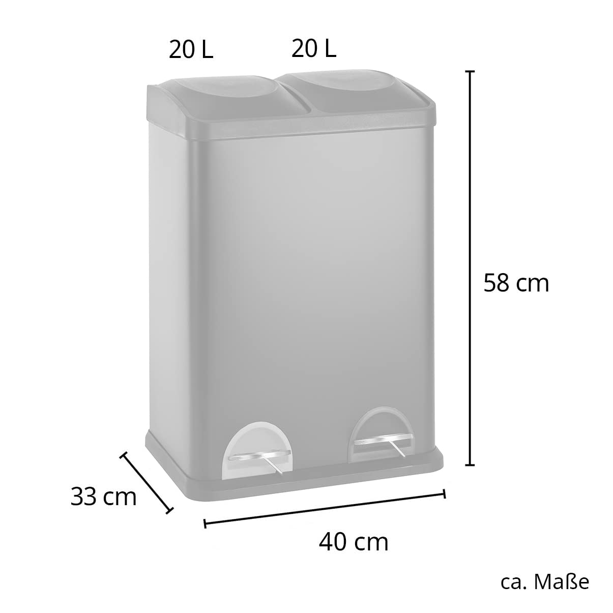 - SVITA Mülleimer TC2x20 Küchen-Eimer mit insgesamt 40L Fassungsvermögen - Einzel-Deckelöffnung mit Tretmechanismus - Inkl. Inneneimer mit Henkel (2 x 20L) - Gesamtmasse: ca. 58 x 33 x 40 cm (HxTxB)