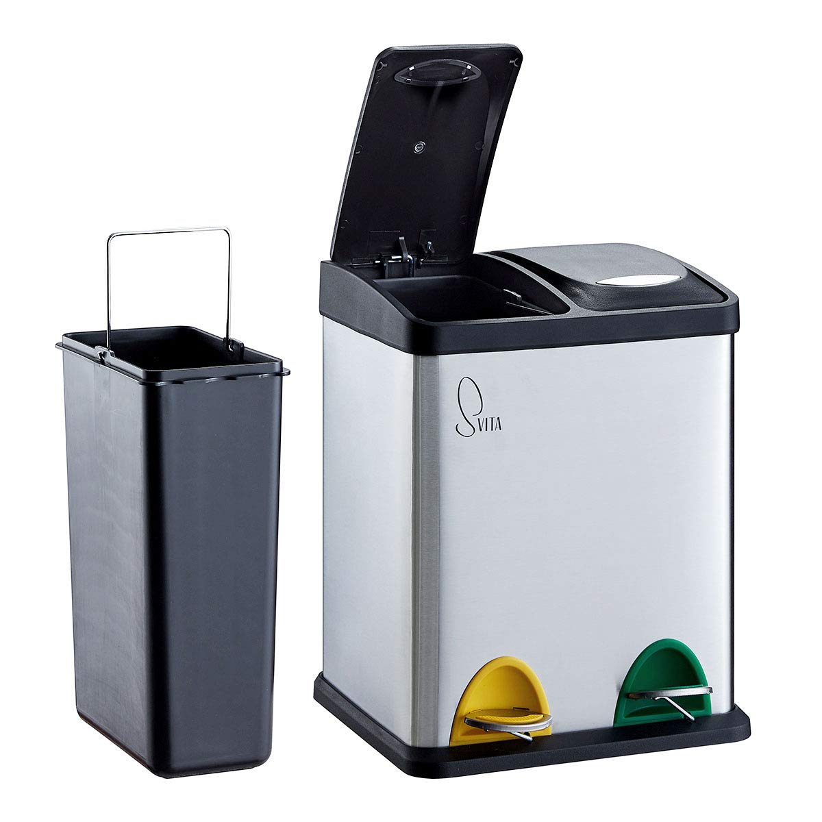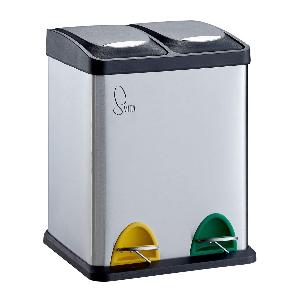 SVITA TC2X8 Küchen-Eimer 16 Liter 2x8L Edelstahl doppelt Abfalleimer kompakt 2er-Mülleimer Mülltrenn
