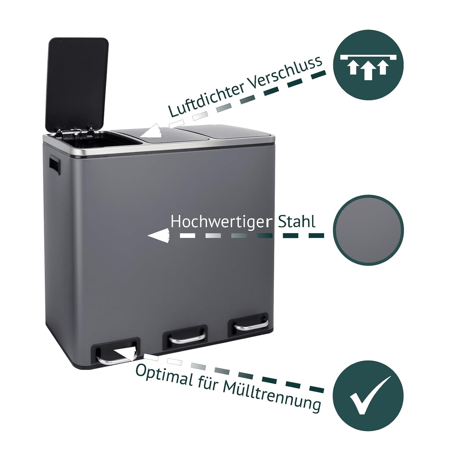 - SVITA TM3X18 mit langlebiger Pulverbeschichtung im edlen Desig - 54 Liter Fassungsvermögen - 3 x 18L Kapazität
