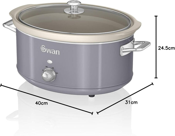 - Grosszügige Kapazität, kompakte Grösse – Die grosszügige 6,5 Liter Kapazität auf diesem Swan Retro Slow Cooker macht ihn zur perfekten Grösse für das Kochen von Mahlzeiten für Sie und Ihren Partner oder für die Wochennacht, ohne dass er zu viel Platz auf Ihrer Arbeitsplatte einnimmt.