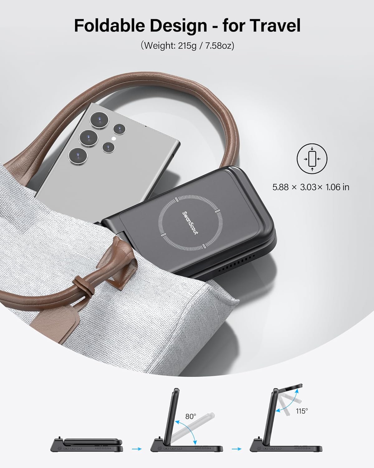 - Faltbar, Immer Reisebereit - Die kabellose Ladestation für Samsung von SwanScout hat ein platzsparendes, faltbares Design und ist kompakt genug, um in jede Tasche zu passen. Seine Tragbarkeit macht es zu einem idealen Reisebegleiter.