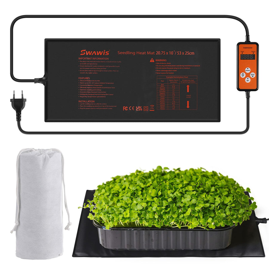 - 【Einfach zu bedienen】 Diese Heizmatte ist einfach zu bedienen. Legen Sie sie einfach an einen geeigneten Ort, schliessen Sie sie an die Stromversorgung an, stellen Sie die gewünschte Temperatur ein und stellen Sie Ihre Anzuchttöpfe oder