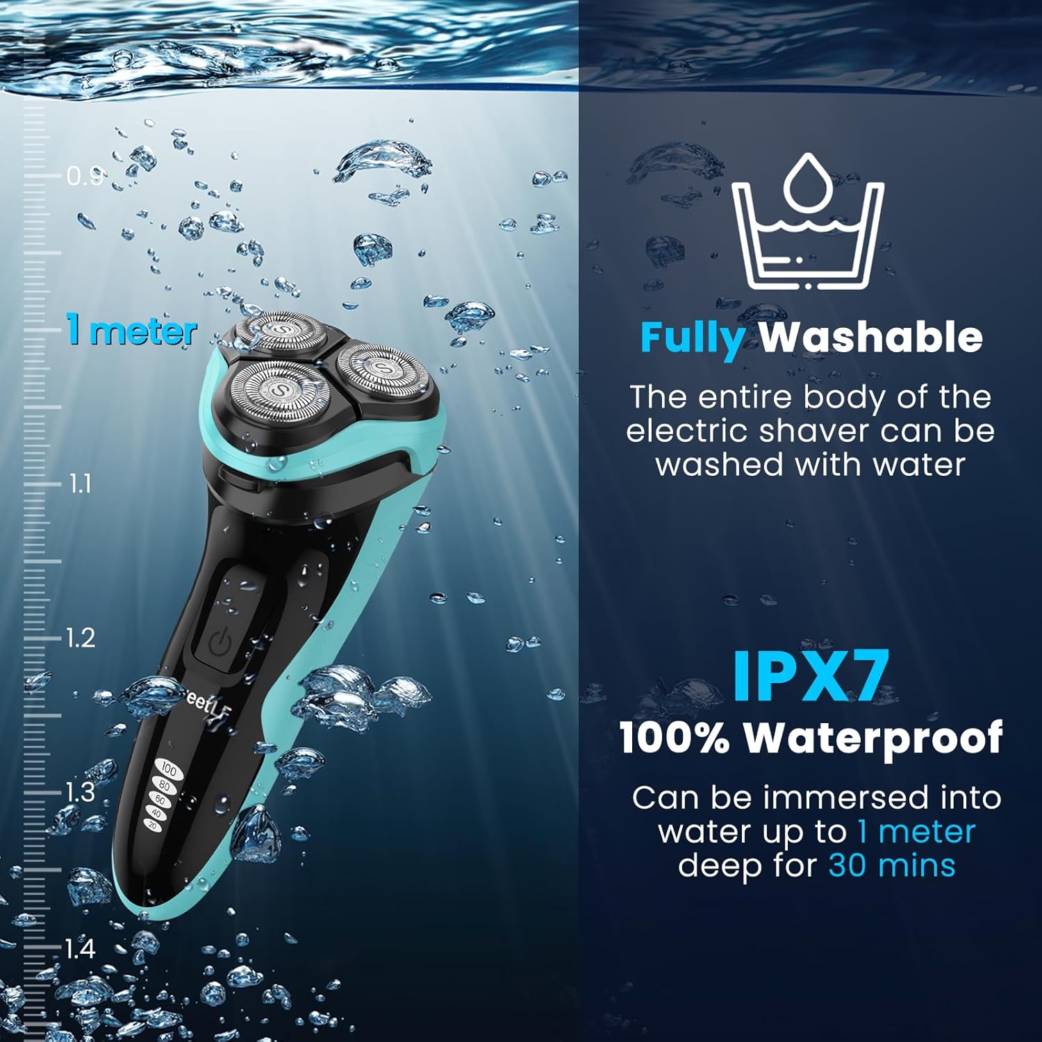 - 【IPX7 WASSERDICHT & NASSE UND TROCKENE VERWENDUNG】Elektrorasierer dank des fortschrittlichen IPX7-Wasserdichtigkeitssystems können Sie den Scherkopf einfach unter fliessendem Wasser reinigen. Geniessen Sie eine bequeme Trockenrasur oder eine