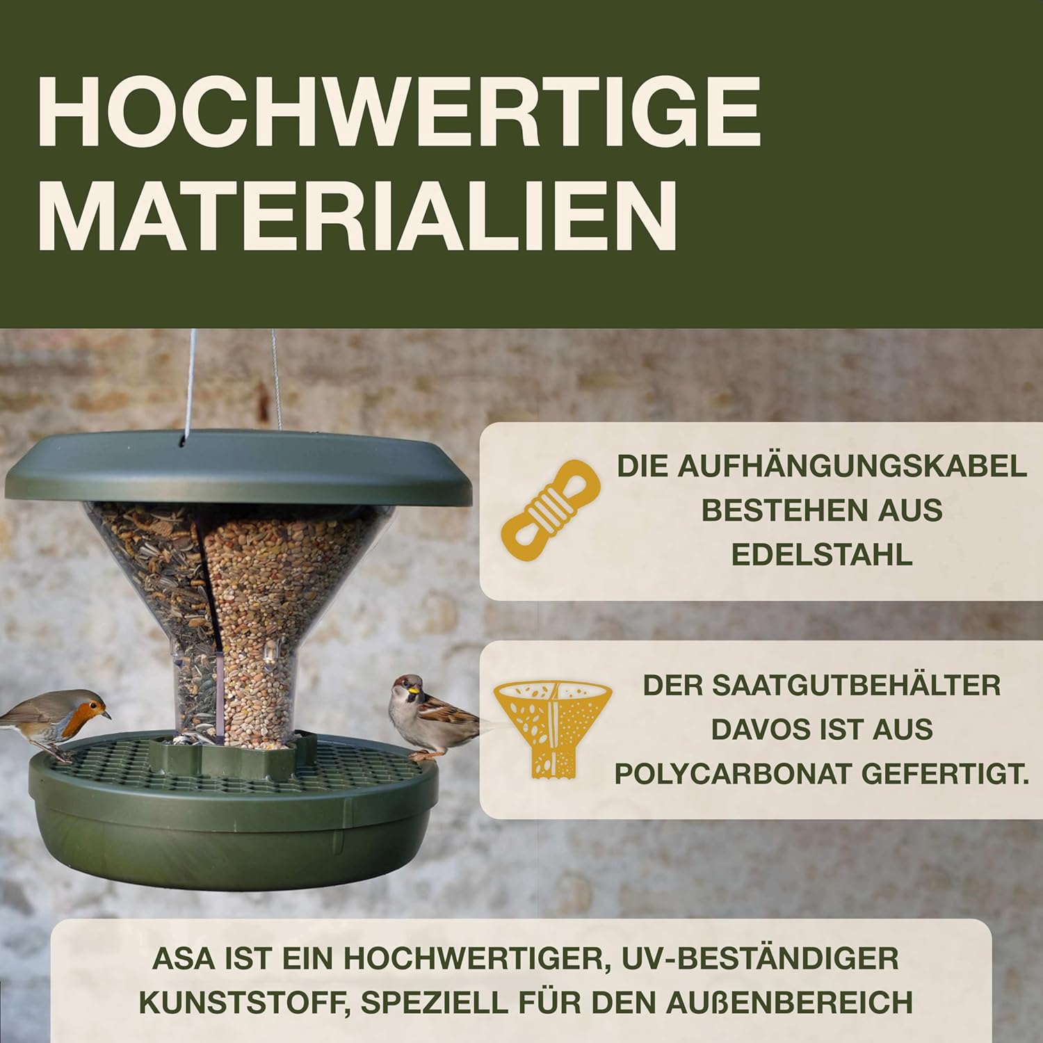 - Kein Vogelfutter auf dem Boden. Mehr Ordnung durch hygienisches Design und weniger Verstreuung von Futterresten