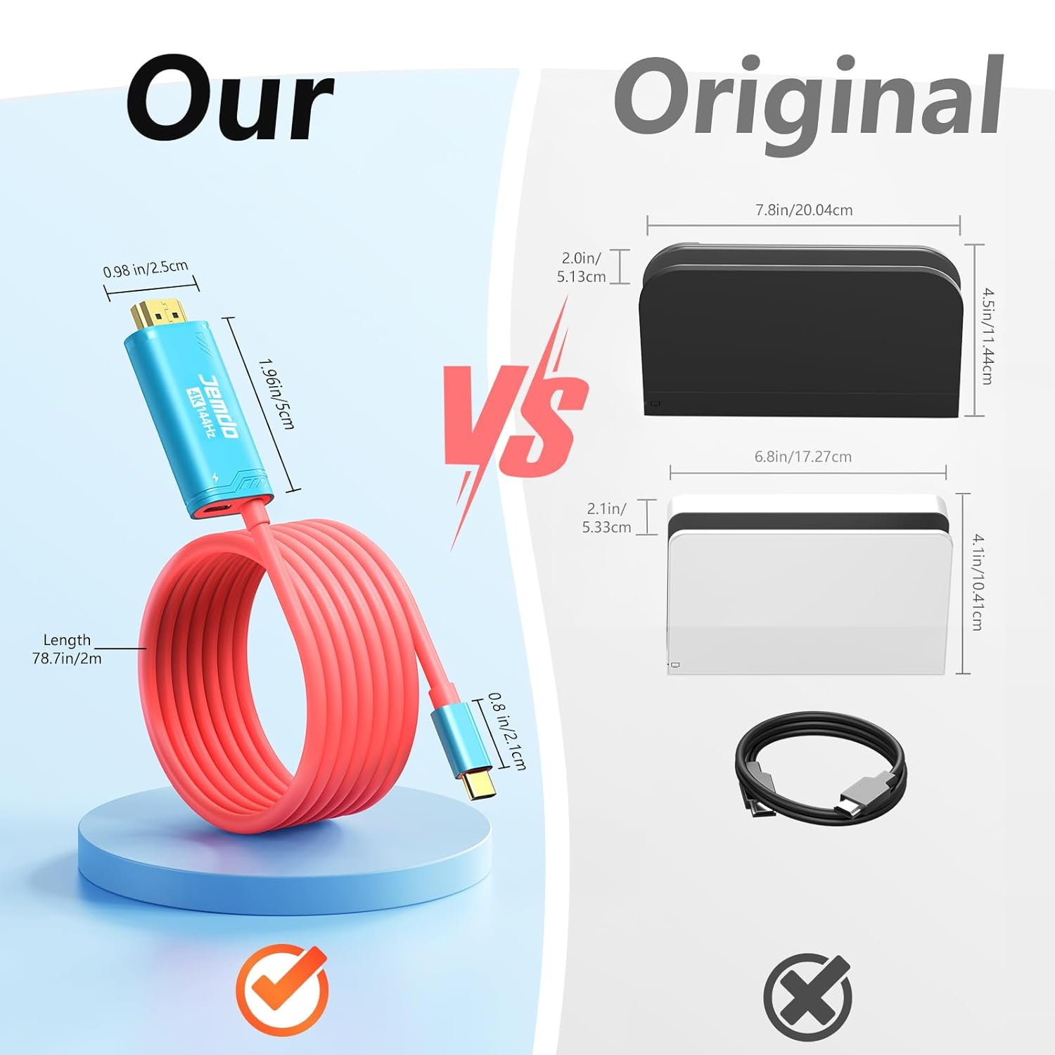 - Kompakt & Reisetauglich – Dock-Ersatz für unterwegs Ersetze das schwere Original-Dock mit einem 75g leichten, 2m langen Switch 2 USB C auf HDMI Kabel, das problemlos in jede Tasche passt. In