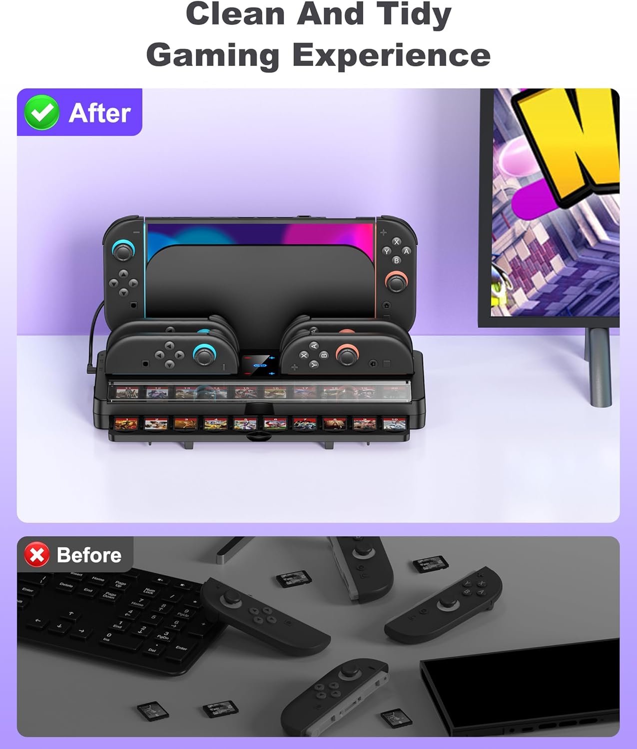 - Perfekt für Switch 2 Spieler: Speziell für die Nintendo Switch 2 Konsole entwickelt: Laden Sie 4 Joy-Pad-Controller gleichzeitig und verstauen Sie Ihre Konsole sicher in der integrierten Docking-Station. Ideal für zwischendurch oder über Nacht –