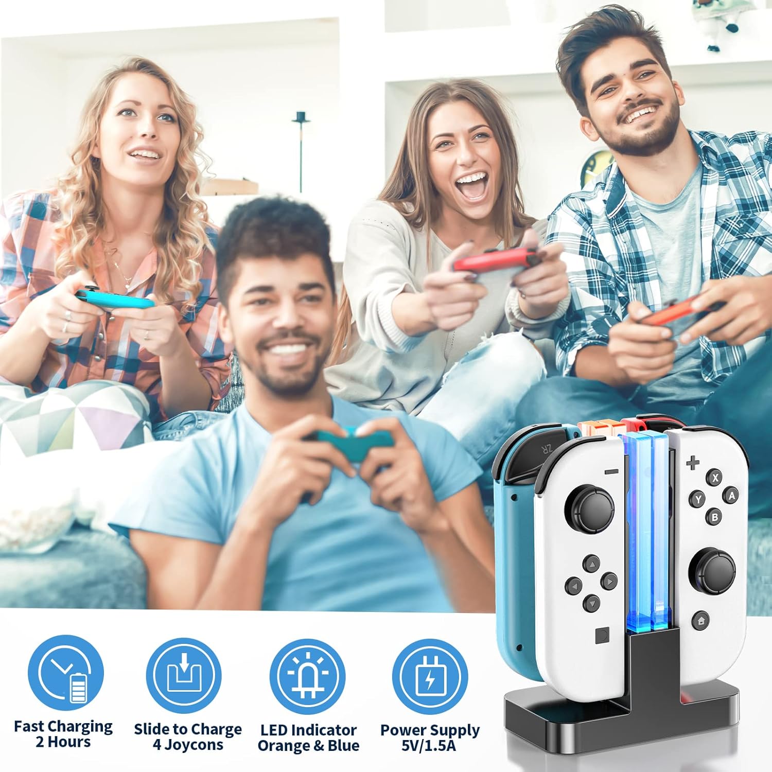 • 【2 Stunden Schnellaufladung】Bei Schlitzen Design können Sie die Joycons leicht in den Ladestation einsetzen. Dieser Nintendo Switch Controller Ladestation kann 4 Switch Joy cons innerhalb von 2 Stunden gleichzeitig aufladen. So müssen Sie keine