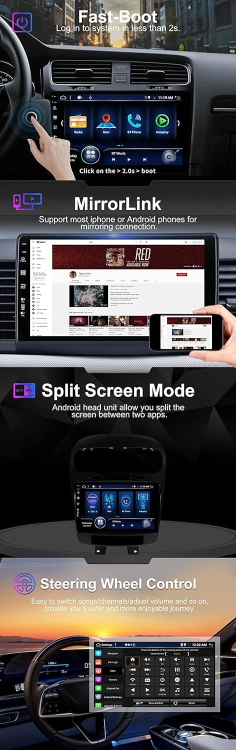 - 【FAST BOOT - 360° KAMERA】① Greifen Sie in weniger als 2 Sekunden auf das System zu, um die Bootzeit des Android-Systems von 25 auf nur 2 Sekunden zu beschleunigen, ist nie einfach. ②Die 360°-Panoramaparkfunktion lässt Sie die Lage um das Auto