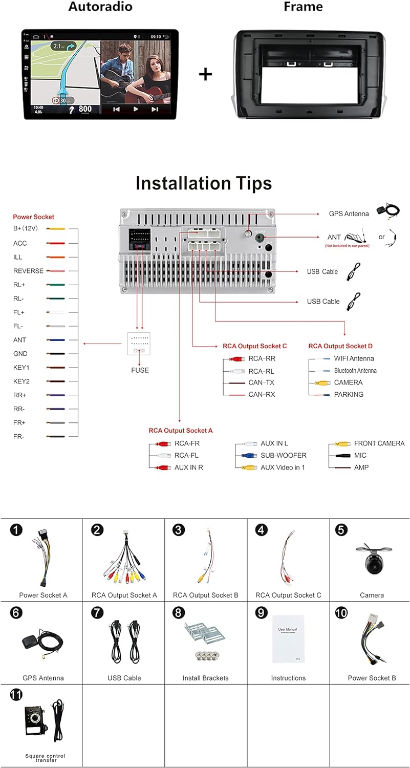 - 【HAUPTEIGENSCHAFTEN】 Bluetooth5.0-Freisprecheinrichtung / Medien-Streaming - AM/FM-Radioempfang / RDS - USB-/MicroSD-Speicher (max. 256 GB) - Online- und Offline-GPS-Navigationssystem - Full HD 1080P-Videowiedergabe - AV-Ausgangsfunktion -